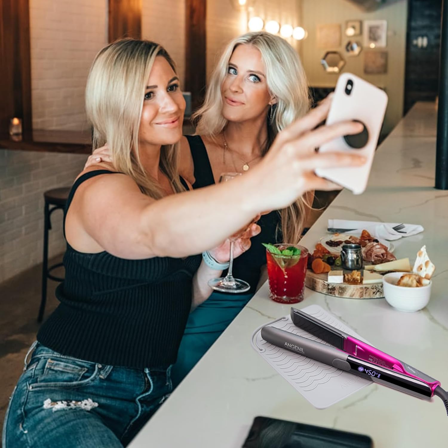 - 🌟【ANGENIL Beauty Flat Iron Hair Straightener】 We focus on Women Hair Beauty and Committed to Professional Salon-grade hairdressing tools. Fast heating system and ultra-smooth easy-glide plates for a sleek, frizz-free finish. Anti-static flat Iron with titanium Floating Plates smoothly glides in hair.