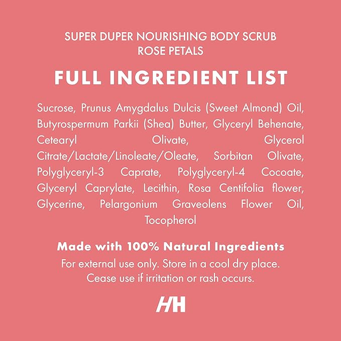- ULTRA NOURISHING & CONDITIONING BODY SCRUB: Exfoliating with sugar, rose and geranium to stimulate blood circulation and promote skin renewal