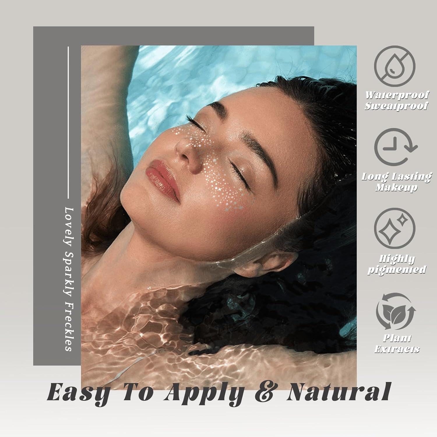 - Easy to Apply: These facial glitter freckle patches are easy to use. All you need to do is peel off the backing, apply the glitter freckle tattoo patch to clean skin, soak it in water, gently press it for tens of seconds, peel off the makeup patch, and the natural glittery design will adhere to your skin