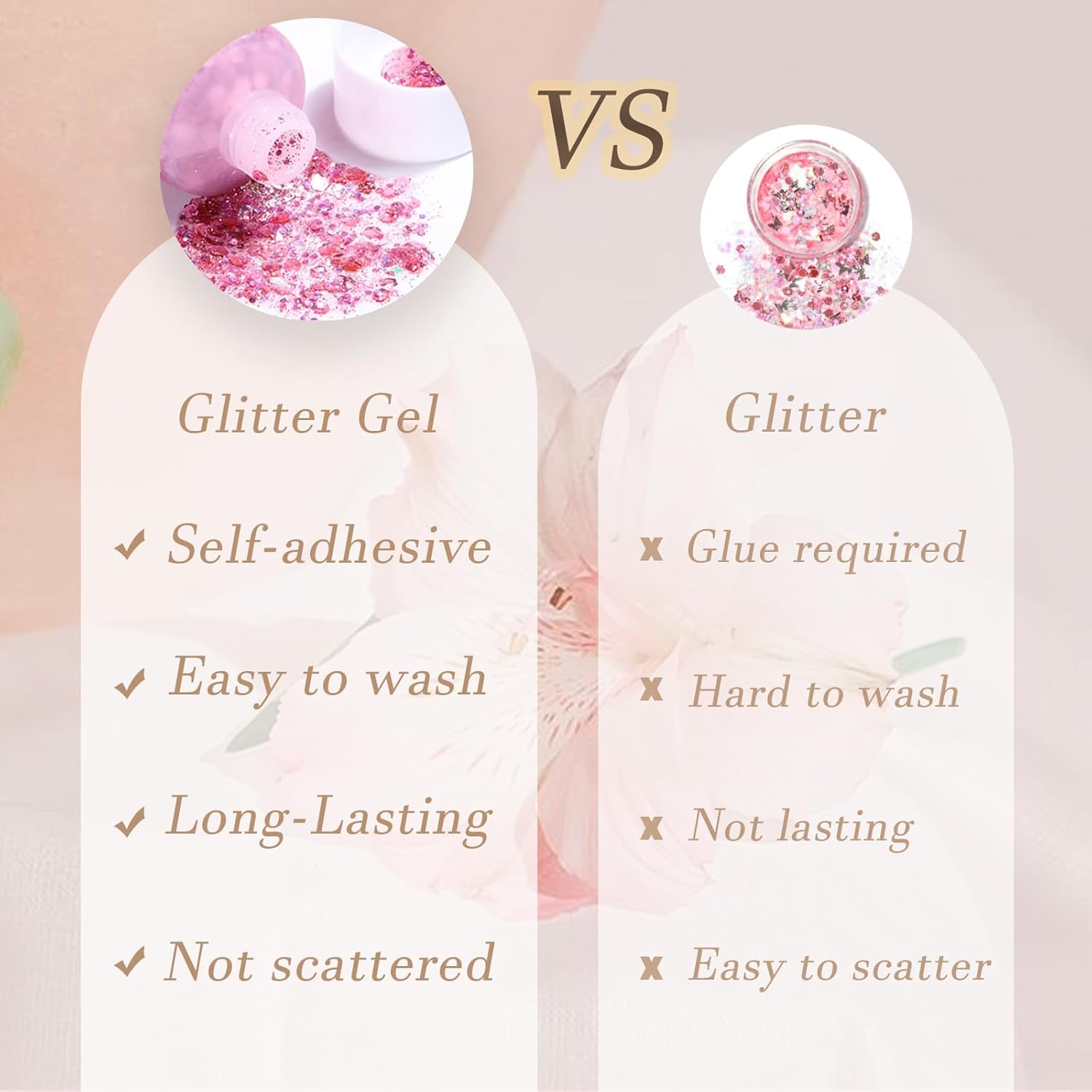 - Easy to Apply and Remove: Face body Chunky Glitter gel no need to use glue when using it, you can apply glitter gel to hair and body with fingertips or brush we match, save your makeup time. It can be used directly on the skin wherever you want to decorate, it will be dry for a moment, and will last all day. You can wash the body glitter easily through the water and soap.