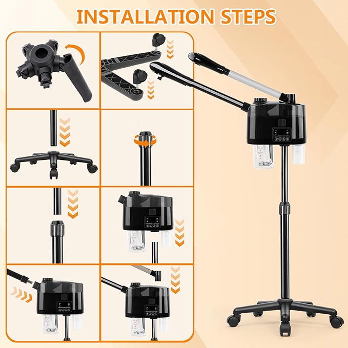- Facial Steamer with Wheels: With five leg base and 5 quiet wheels, moves smoothly and quietly, and it can be easily Installation and disassembly, easy for cleaning