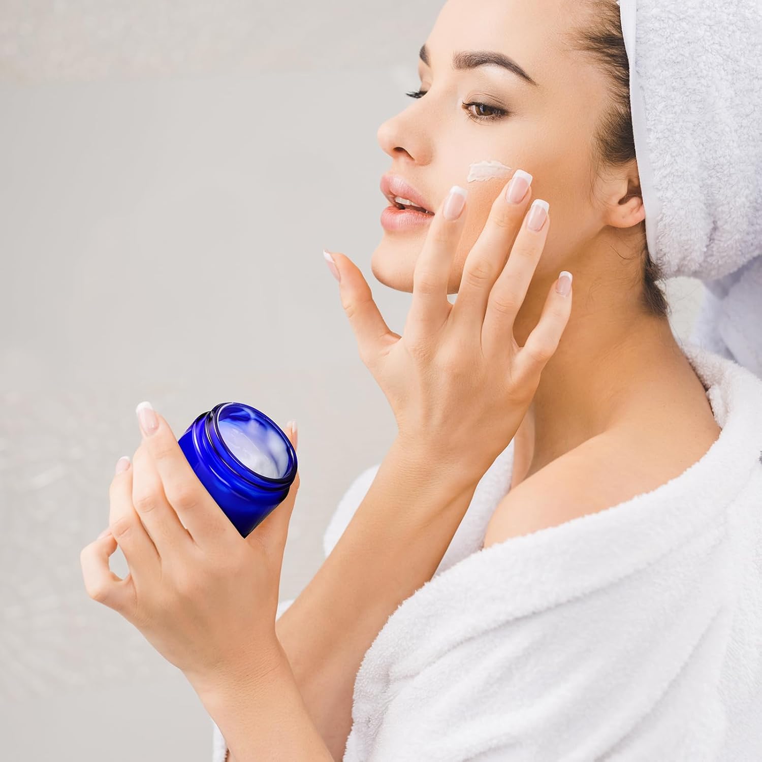 Norme 64 Pcs 4 oz Glass Jars with Lids Leakproof Round Airtight Empty Cosmetic Jars with Inner Liners Lid for Storing Lotions Powder Ointments Candle Making Tins (Blue,Black)