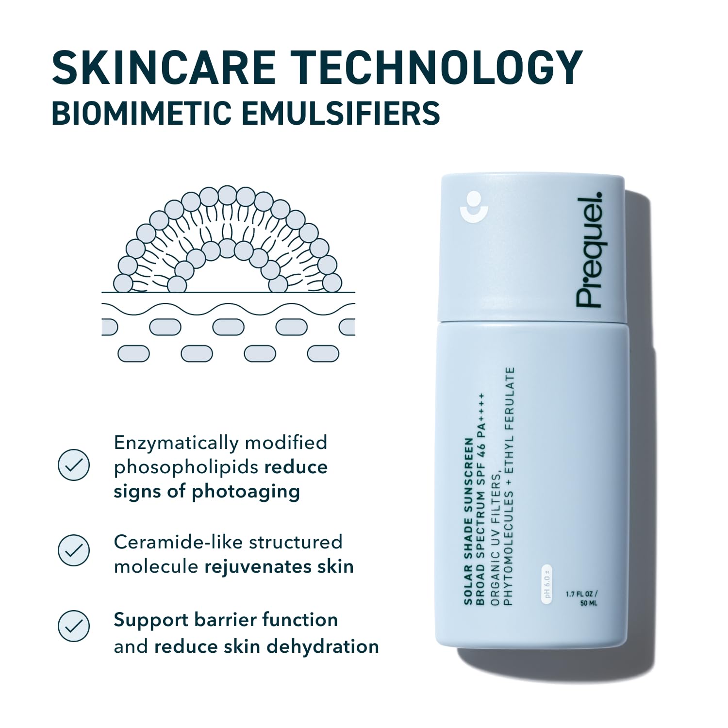 Prequel Skin Solar Shade - Moisturizing Face Sunscreen SPF 46 PA++++ Broad Spectrum UV Protection. Hydrating Sunblock for Dry Skin. Lightweight Travel Size Sun Protection, 1.7oz