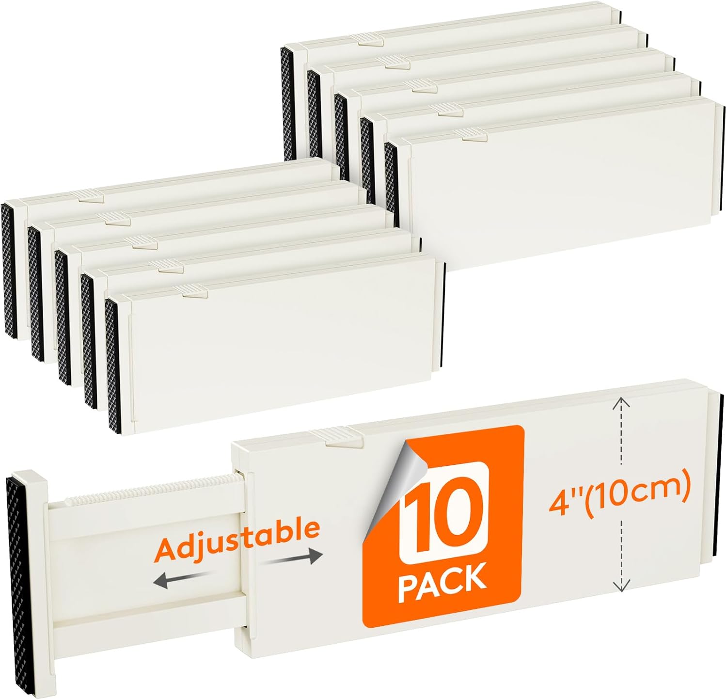 Lifewit 10 Pack Drawer Dividers Plastic 4" High, 11-17" Adjustable Drawer Organizers for Clothes, Expandable Dresser Separators in Bedroom/Bathroom/Kitchen/Office Organization and Storage, Beige