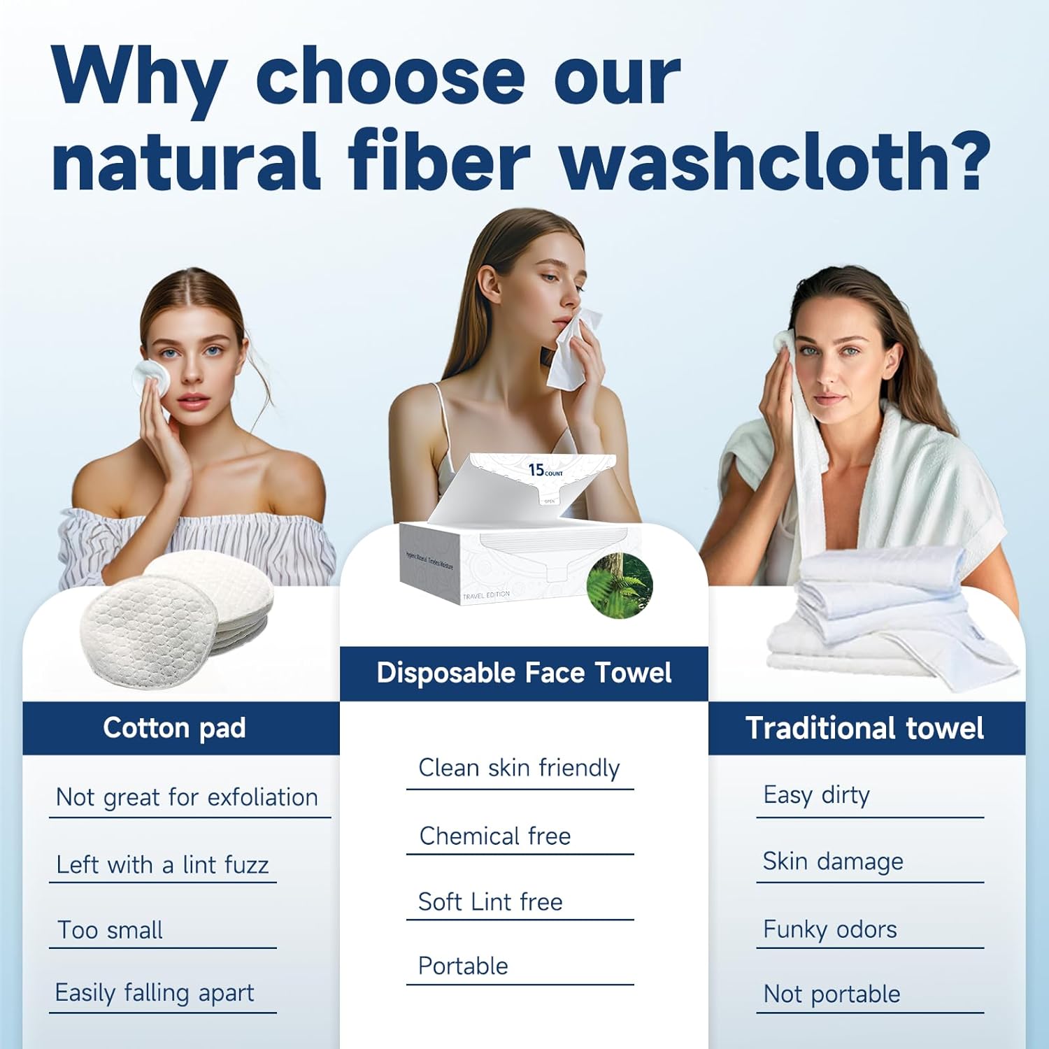 - EXCELLENT NATURAL FABRIC: Disposable face towel made of natural plant fibre Which is 100% biodegradable, Chemical-free no fluorescer, Safely and efficiently use these facial towels without fragrance.However, facial cleansing towel has an excellent cleaning effect and is suitable for all skin types,including normal, oily, dry and sensitive skin