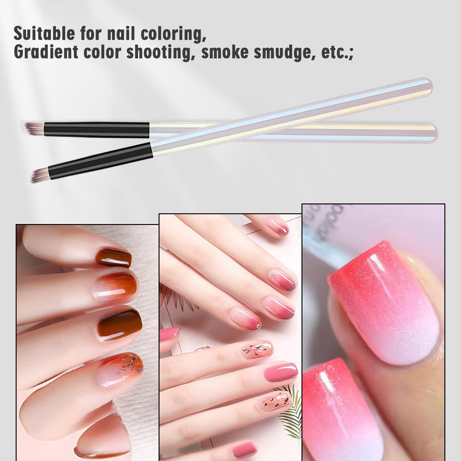 - EASY TO USE AND VERSATILE: With a oblique-shaped brush tip designed for gradient effects, these nail ombre brushes are incredibly easy to handle. They can create a seamless blend of colors from light to dark or draw precise lines. Plus, they can be used to nails clean up and random spot designs.