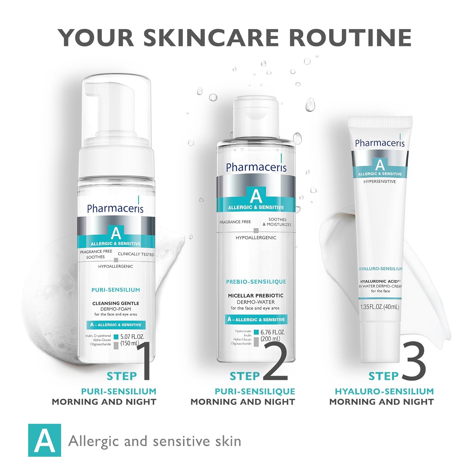 Pharmaceris PREBIO-SENSILIQUE Micellar Prebiotic Dermo-Water for Face & Eyes, Removes Makeup & Impurities, Soothes & Moisturizes Allergic & Sensitive Skin, Safe for Contact Lens Wearers, 6.76 fl oz