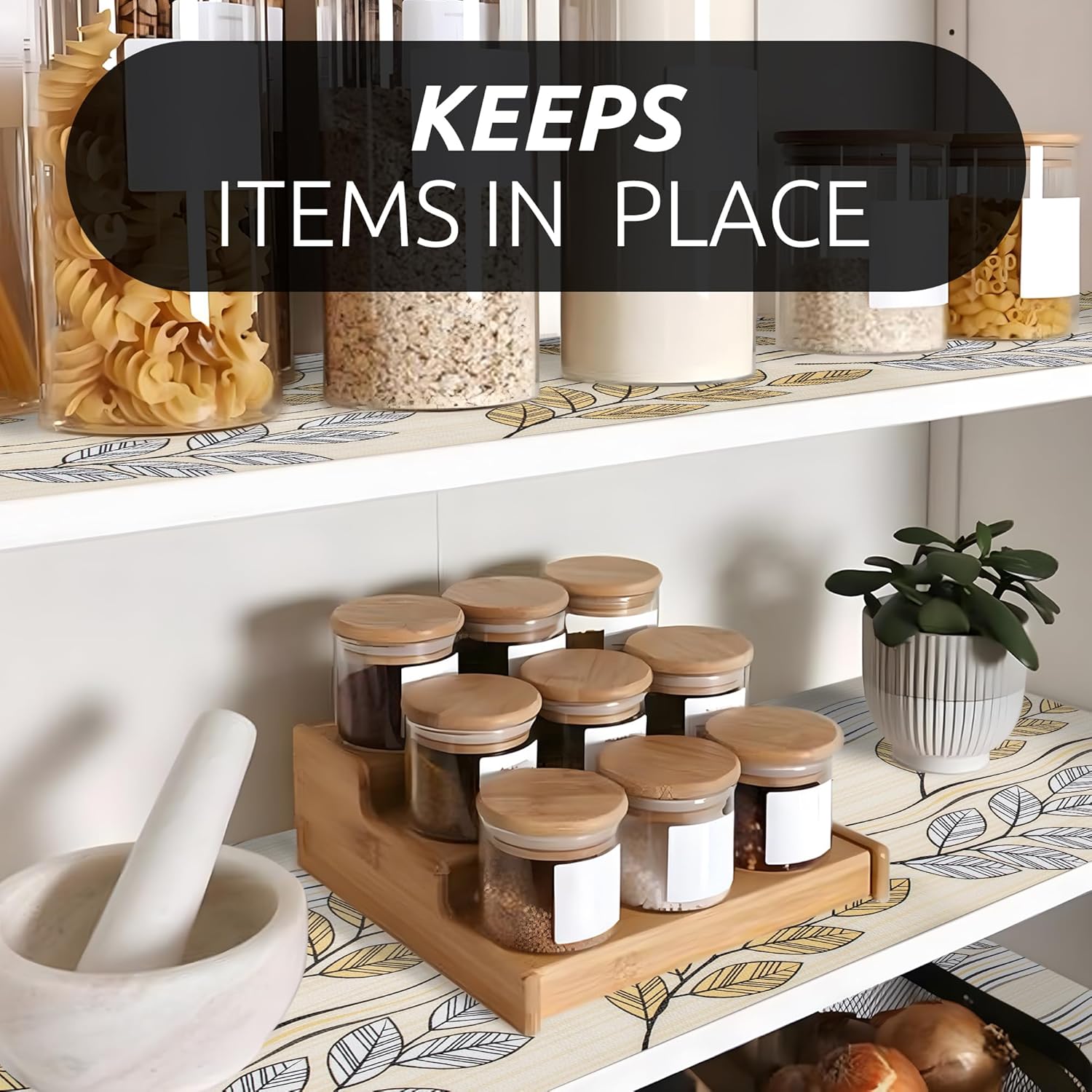 RAY STAR 12X120 Inch Shelf Liner for Kitchen Cabinets, Non-Adhesive Cabinet Liner Washable, PVC Drawer Liner for Dresser Non-Slip Bathroom (Beige Leaf)(1 Roll)