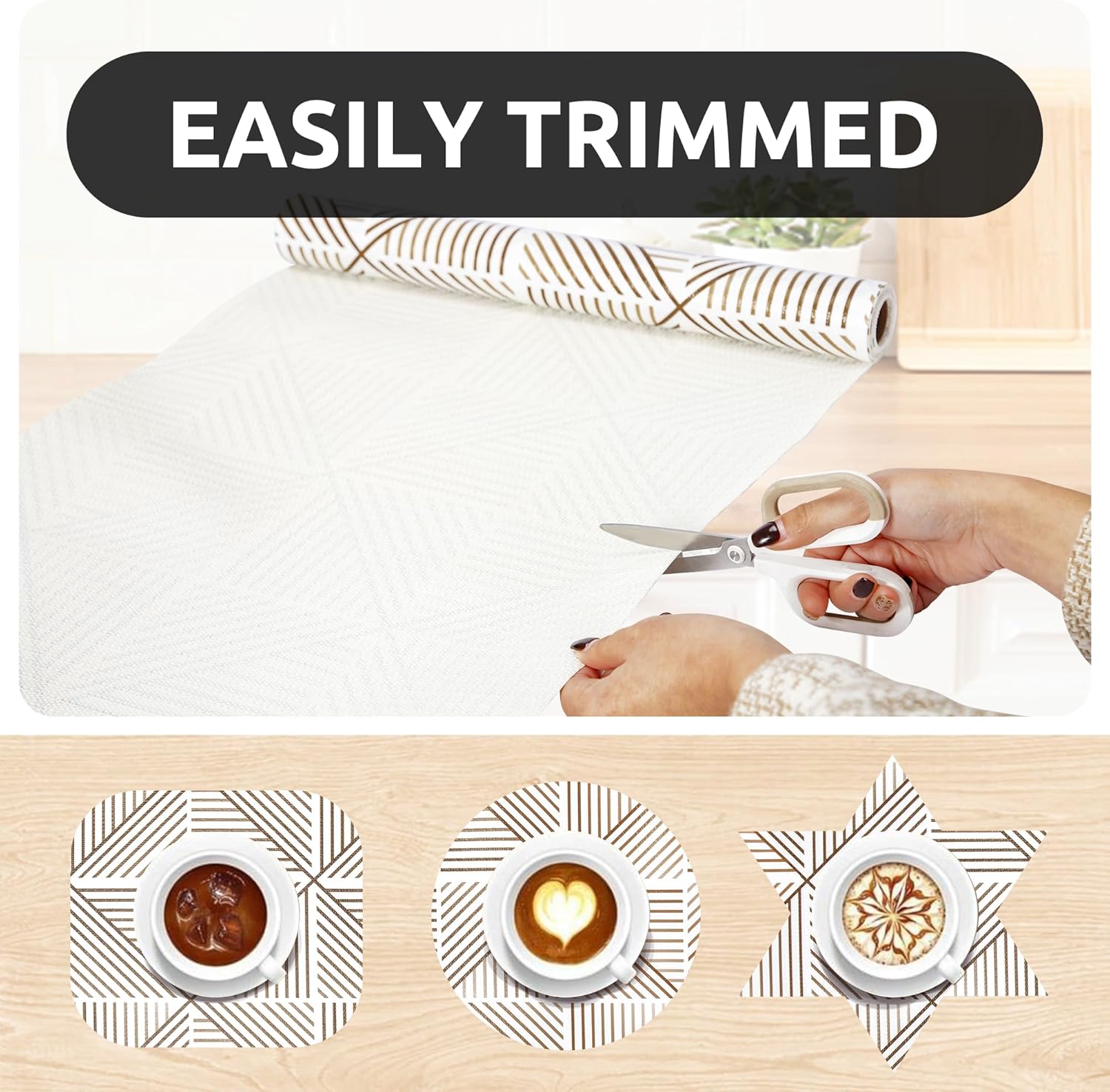 - Elegant Design - The differences of shelf liner between ours and the others is appearance designs. We will take into account the needs of customers for aesthetics. Therefore, to instead of regular plain shelf liners, we thought about European style design, use our shelf liner to decorate your refrigerator, shelf, kitchen, bathroom.