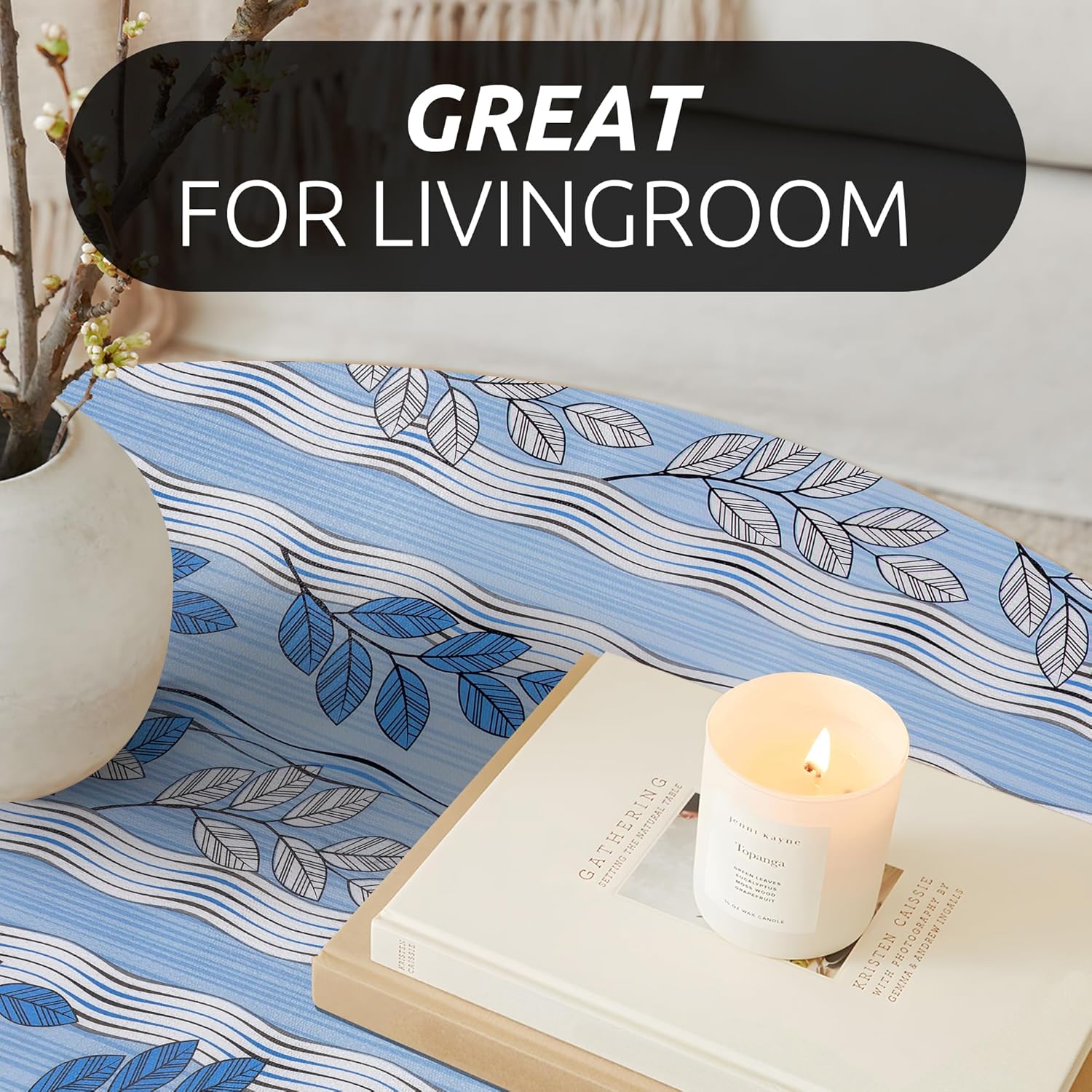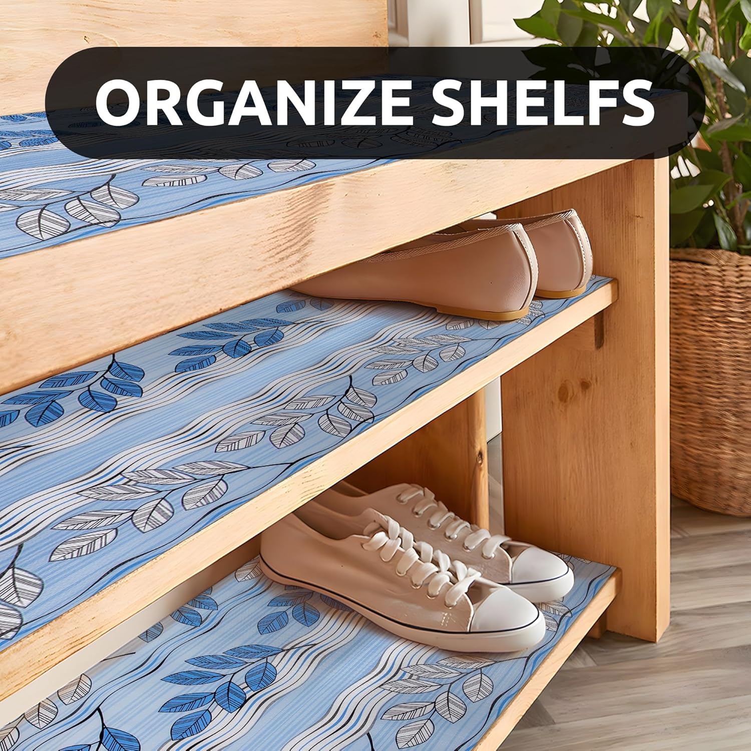 RAY STAR 18X96 Inch Shelf Liner for Kitchen Cabinets, Non-Adhesive Cabinet Liner Washable, PVC Drawer Liner for Dresser Non-Slip Bathroom (Blue Leaf)(1 Roll)