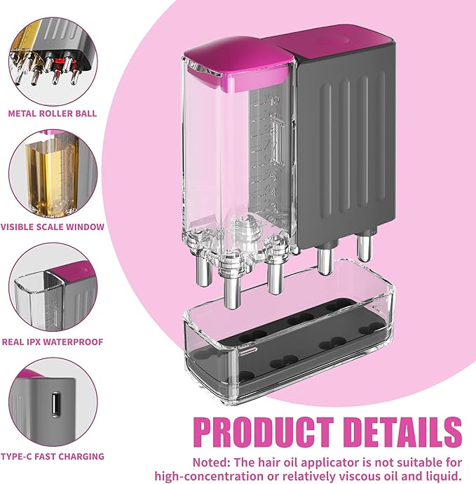 Electric Hair Oil Applicator for Scalp with Massage, Scalp Massager for Scalp Care | Hair Oiling Applicator & Oil Bottles for Healthy Hair | Electric Hair Brush for Healthy Scalp (Pink)