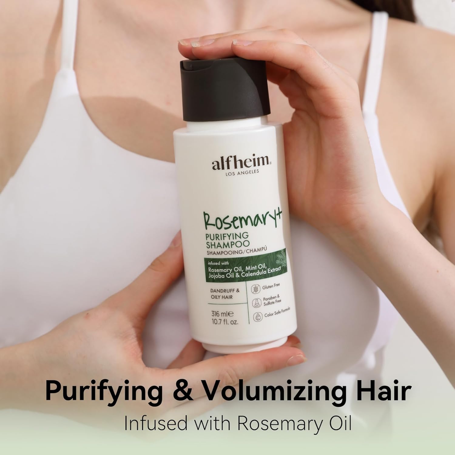 ALFHEIM Rosemary+ Purifying Shampoo for Oily & Fine Hair with Rosemary, Peppermint & Jojoba Oils – Travel Size – Deep Cleanse, Balance & Refresh – Vegan, Sulfate-Free, Cruelty-Free – 10.7 oz / 316 ml