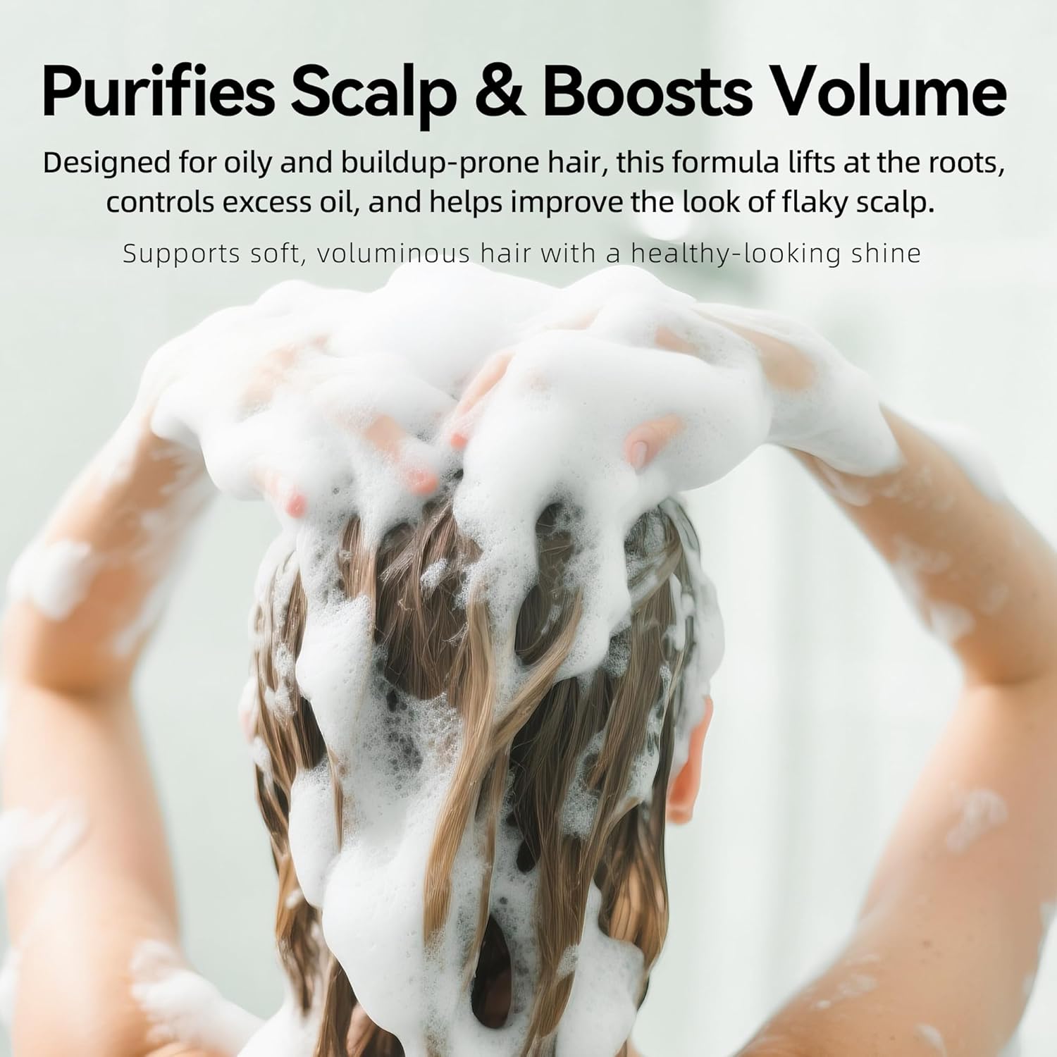 - TARGETED FOR OILY & FINE HAIR: Lightweight clarifying care that refreshes flat roots and resists midday collapse; cleans deeply yet won’t weigh strands down, helping hair look fuller, airier, and smoother—ideal for oil-prone, product-loaded, easily weighed-down hair types seeking lifted, lasting volume