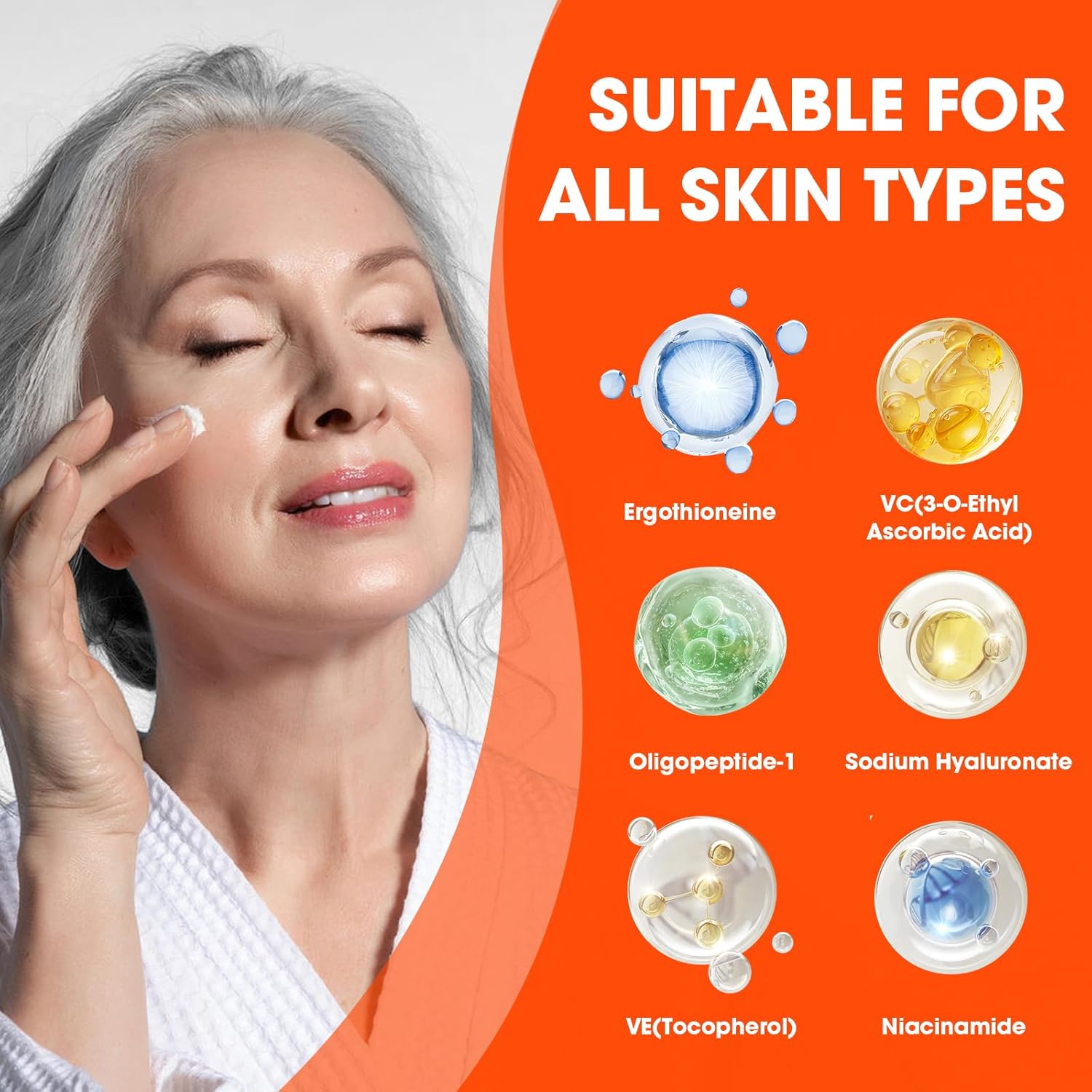 - One Serum, All the Perks: Why stop at your face? This fast-absorbing super c serum works magic on your neck, chest, and even those sneaky hand wrinkles. Multi-tasking MVP for head-to-toe glow!providing a smooth canvas for makeup application and Mild and Non-irritating, Suitable for all skin types of women over 30 years old!