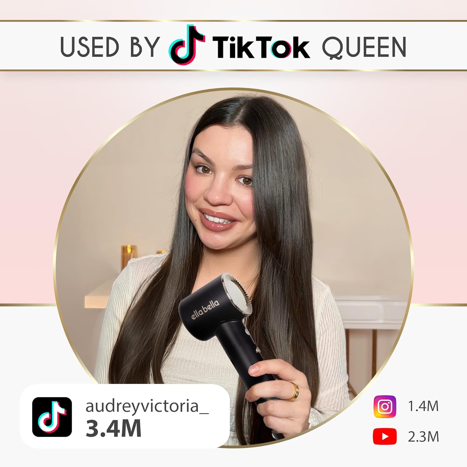 ELLA BELLA® Compact Plasma Hair Dryer, Advanced Plasma Technology Blow Dryer with Digital Display, Rapid Drying, Low Noise, & Luxury Velvet Travel Bag - Includes Diffuser & Nozzle- for All Hair Types
