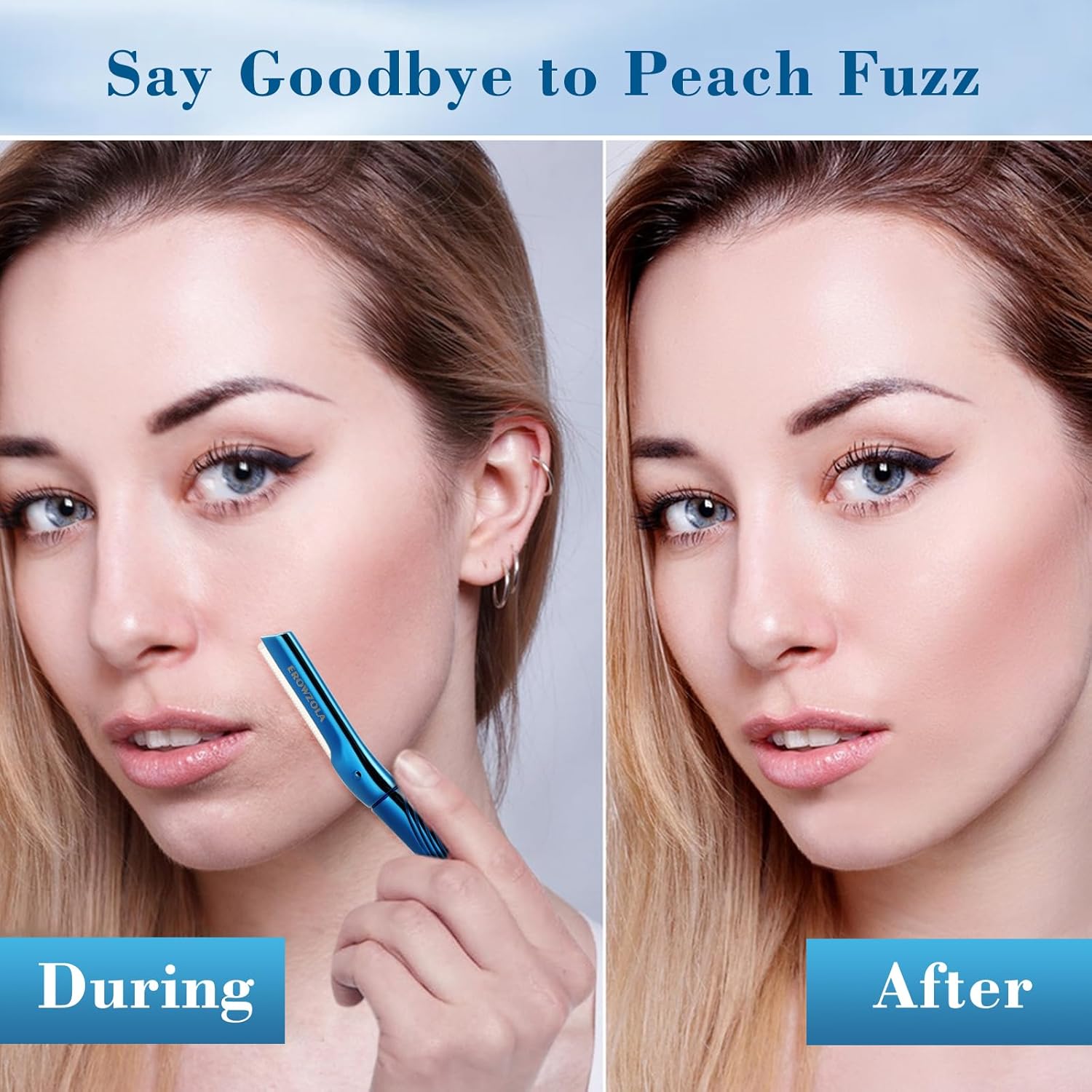 Eyebrow Razor, Face Razors for Women and Men, Reusable Metal Handle with 6 Refill Blades, Eyebrow Trimmer with Precision Cover, Dermaplane Razor, Skin Care Tool - Blue