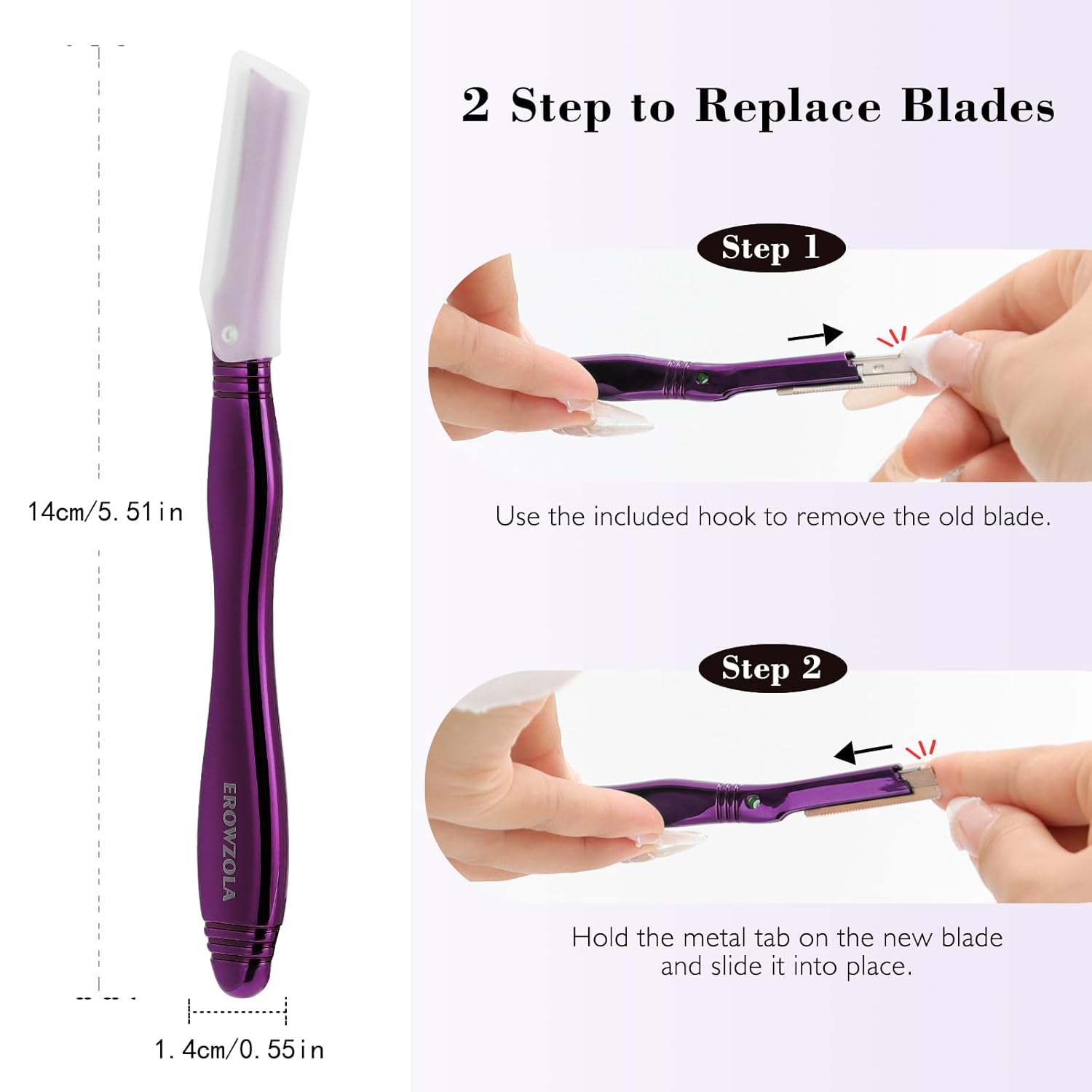 - Metal Eyebrow Shaver – Ergonomically designed with replaceable blades for a cost-effective, alternative that reduces plastic waste