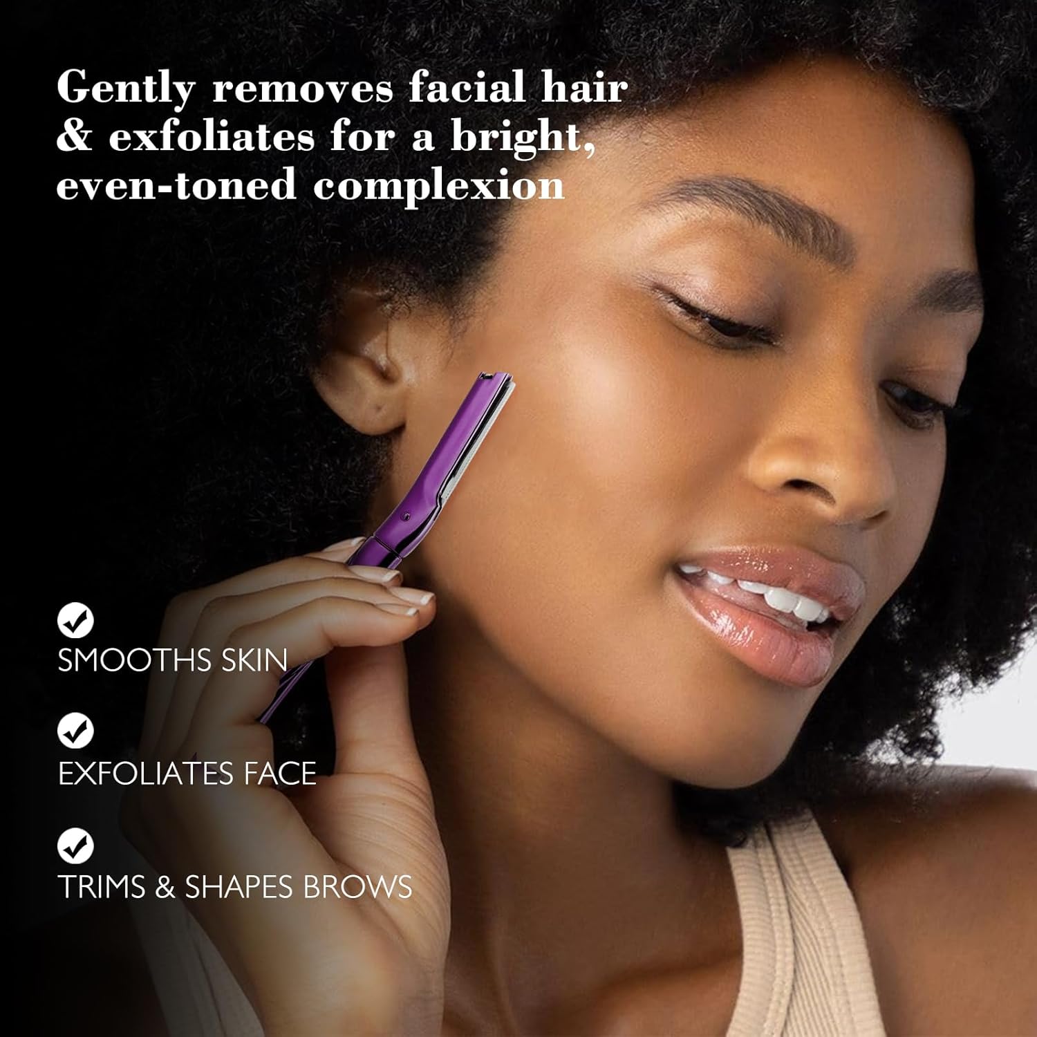 Eyebrow Razor, Face Razors for Women and Men, Reusable Metal Handle with 6 Refill Blades, Eyebrow Trimmer with Precision Cover, Dermaplane Razor, Skin Care Tool, Purple