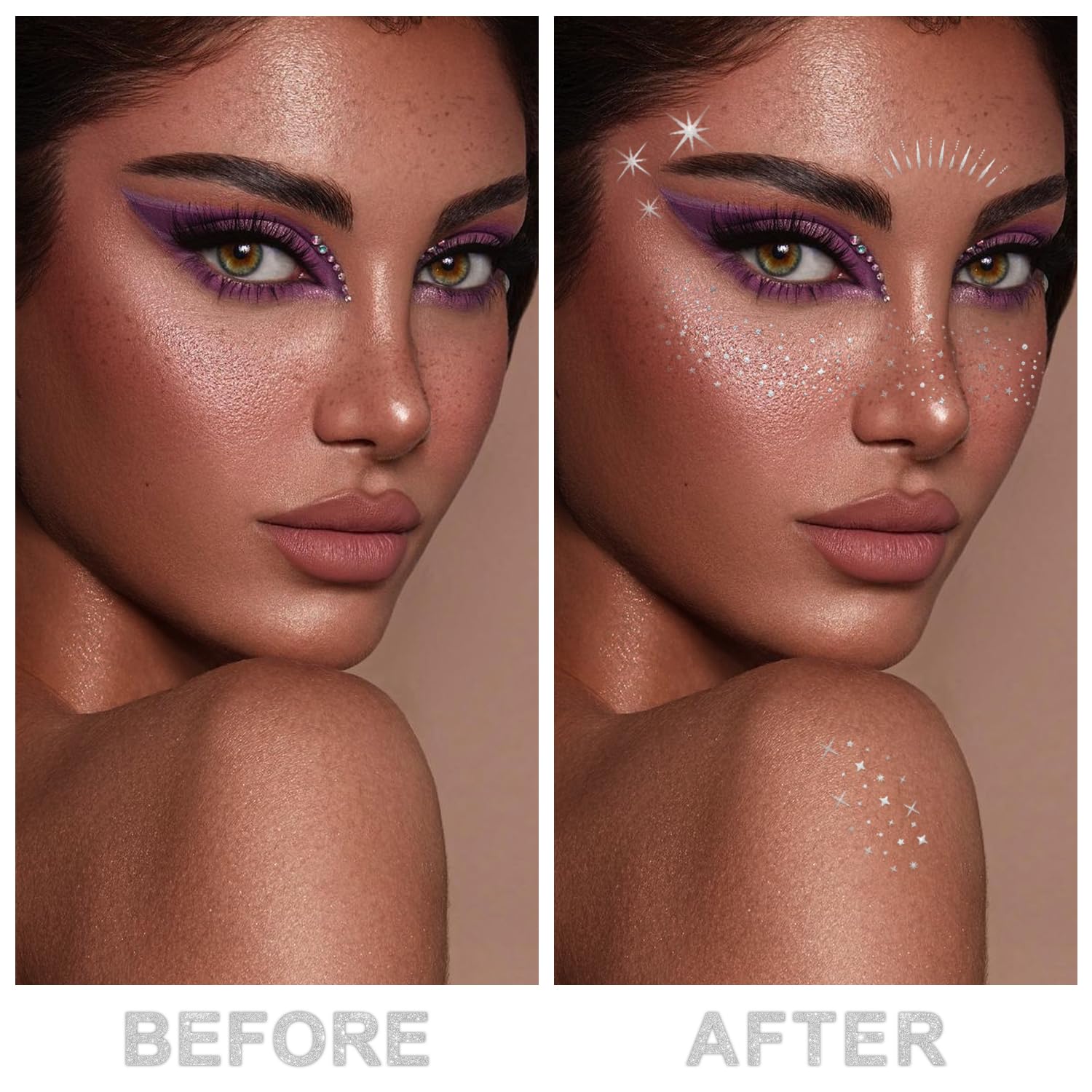 - ✨ LONG-LASTING EFFECT - Elevate your beauty game with our glitter freckles that stay flawless from morning until night. These glitter face tattoos seamlessly blend with your skin, keeping your freckled look intact all day. Whether you're at a party or any special event, you can trust our glitter freckles to deliver a radiant, fairy-like glow that lasts.