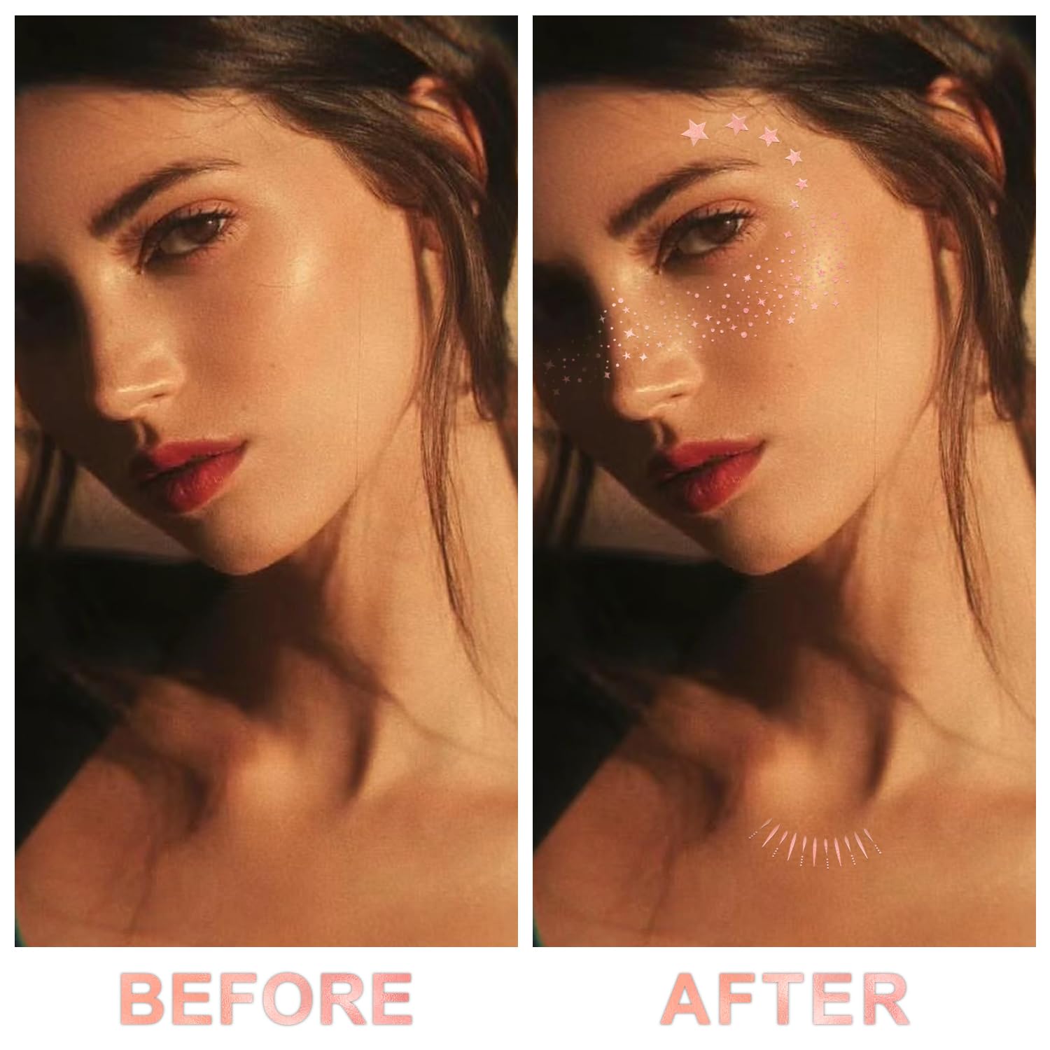 - ✨ LONG-LASTING EFFECT - Elevate your beauty game with our glitter freckles that stay flawless from morning until night. These glitter face tattoos seamlessly blend with your skin, keeping your freckled look intact all day. Whether you're at a party or any special event, you can trust our glitter freckles to deliver a radiant, fairy-like glow that lasts.
