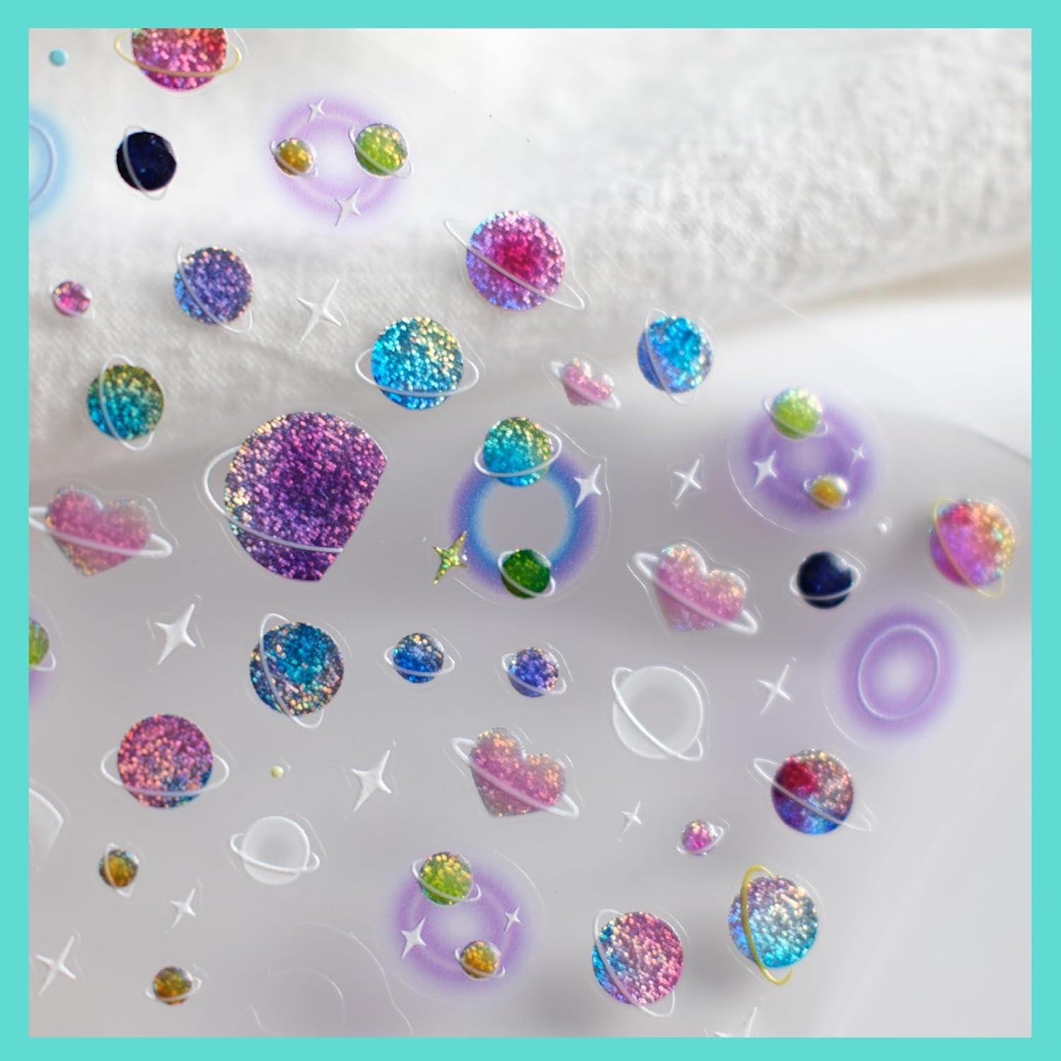 Sparkling Stellar Nail Art Stickers, Glittering Shinny Galaxy Nail Decals,Self-Adhesive, for Women Decorations