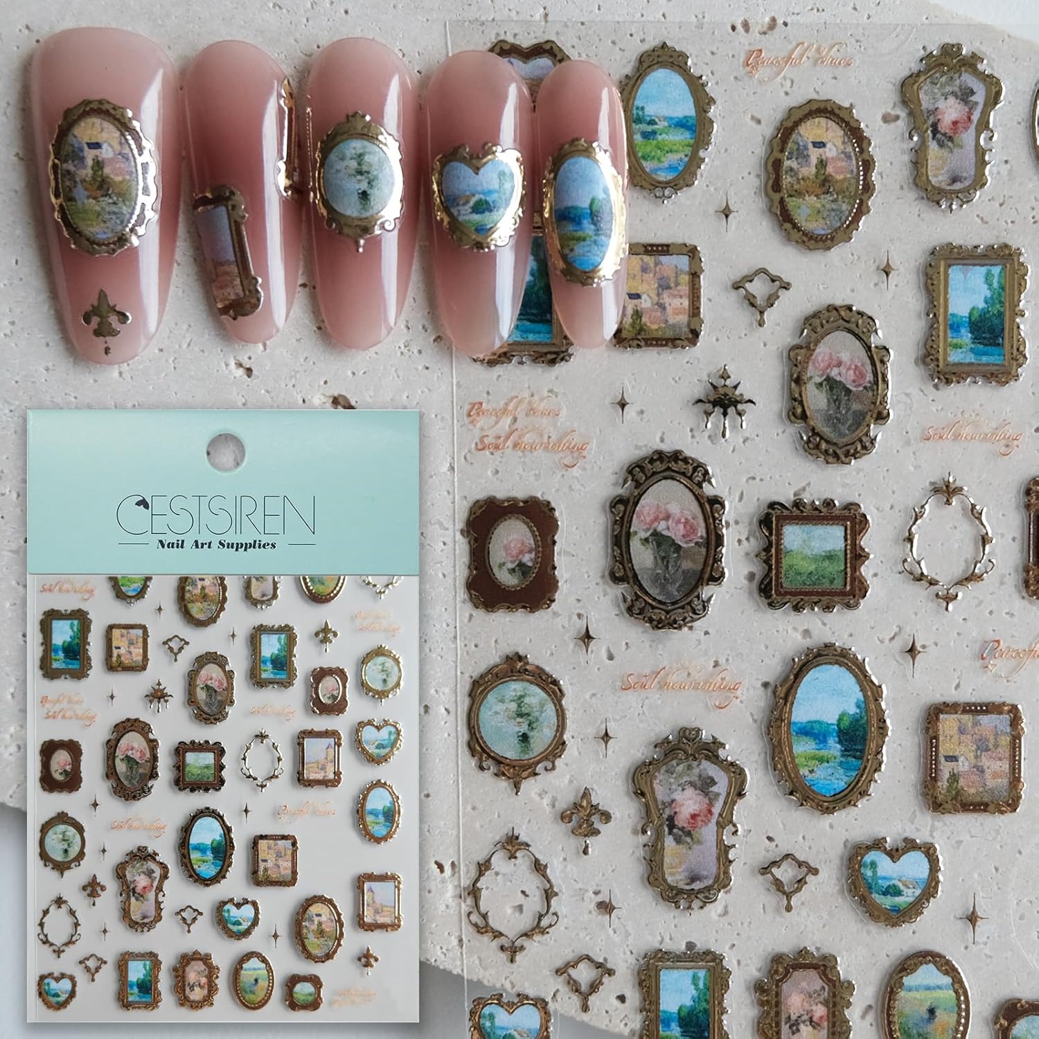 Golden Frame Nail Art Stickers, Self-Adhesive Vintage Nail Decals Women's Nail Accessories