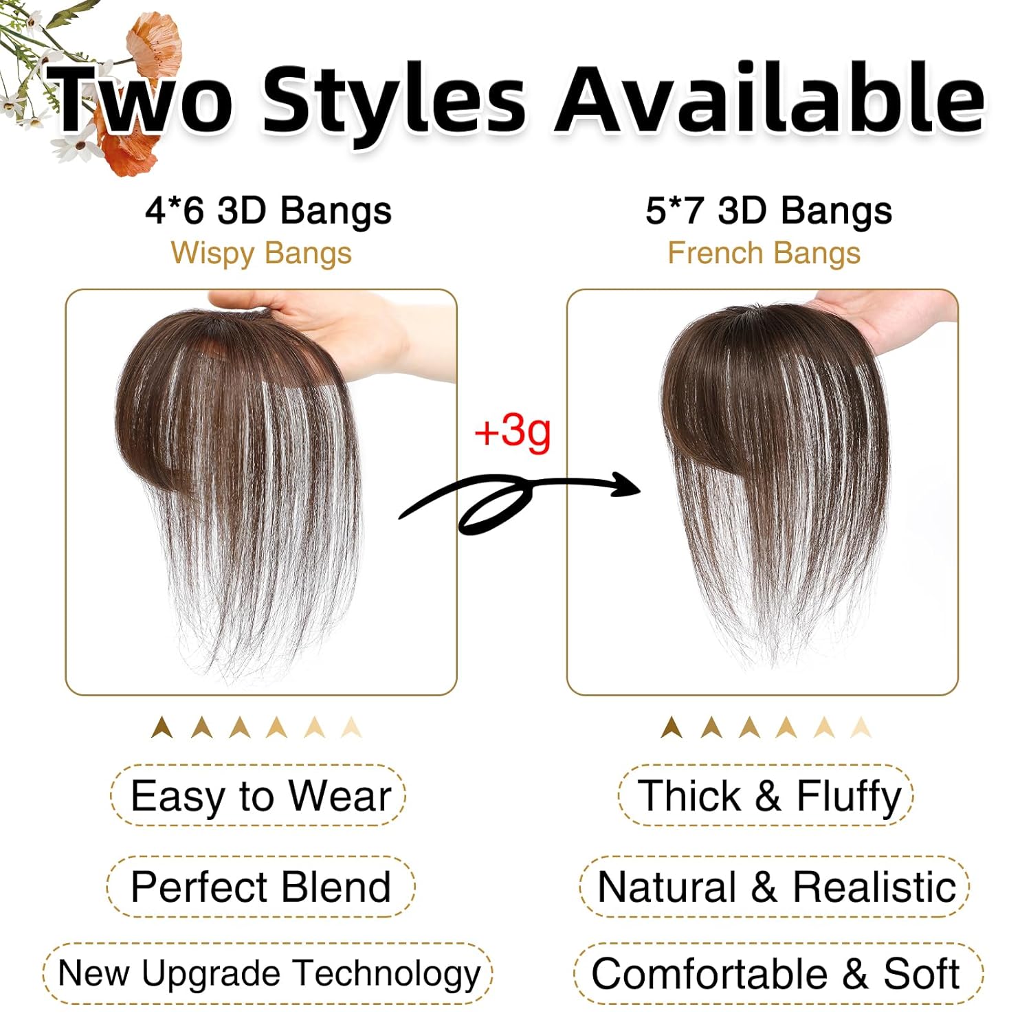 - 🌹【Try and Enjoy the Hair Topper with Bangs】:This is a great way to inspect if bangs look good on you before changing your hairstyle. Don't be annoyed about cutting a bad fringe. With this clip in bangs, you can say goodbye to the trouble of frequent trimming, and there is no awkward growth period, and you can easily create charming human hair bangs. No need to queue at the barber shop and effortlessly save time and money.They are suitable for various occasions, such as parties, cosplay, weddings, and daily wear. They can instantly transform your look and add a touch of glamour to any outfit.