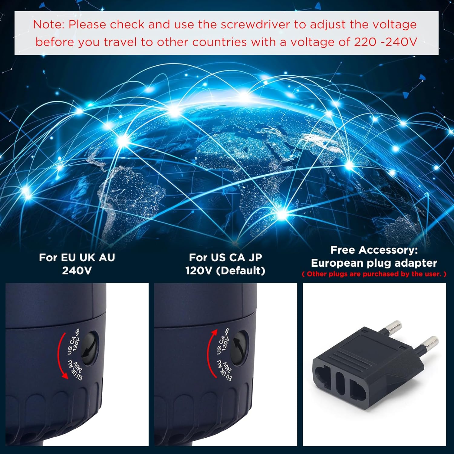 - Worldwide Dual Voltage Hot Air Brush Travel to More Countries - This dual voltage hair dryer brush can easily adapt to both the USA voltage and other countries. You no longer have to worry about voltage mismatch. Whether you are traveling for business or leisure, just bring it with you, and you can easily create exquisite hairstyles and keep them in the best condition at all times. The package include accessory 1 x Europe plug adapter for free. (Other plug adapter, kindly please buy youself according to the local plug)
