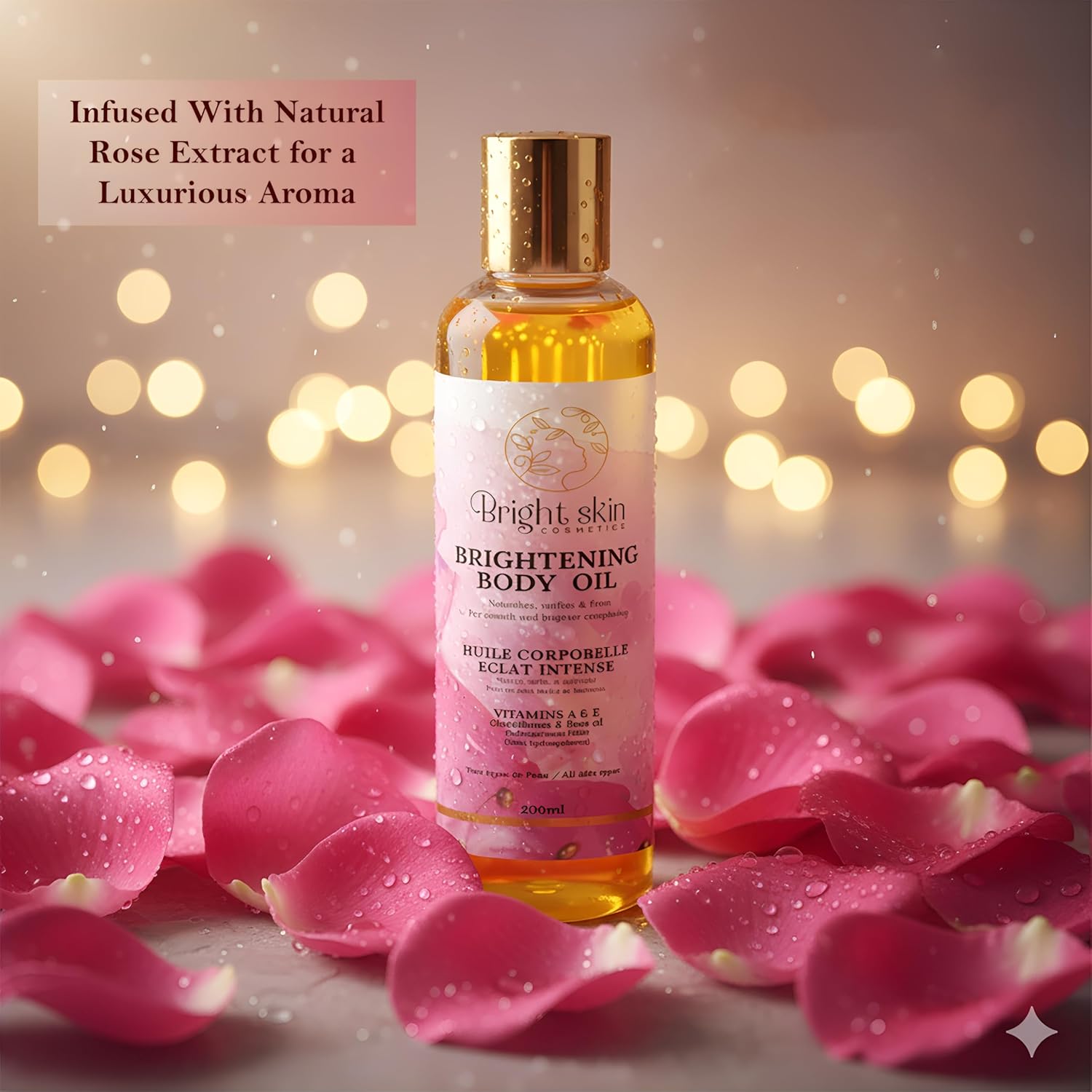 Best Brightening Body Oil (6.5 oz) - Glutathione, Arbutin, Rosehip Oil, Rose Extract for Uneven Skin Tone, Dark Spots, Scars, Anti-aging, Anti-wrinkle, Sunscreen, Scar Healing