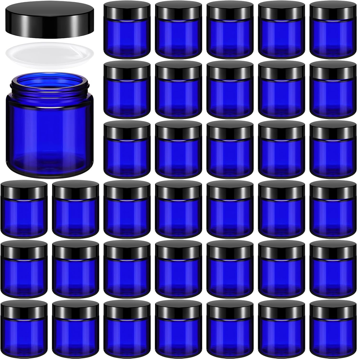 Norme 36 Pcs 4 oz Glass Jars with Lids Leakproof Round Airtight Empty Cosmetic Jars with Inner Liners Lid for Storing Lotions Powder Ointments Candle Making Tins (Blue,Black)
