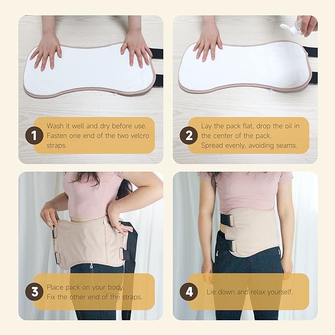 - Castor Oil Pack Unique Pouch Design & Good Value -The castor oil packs kits contains: 1x cotton essential castor oil pack and 2x adjustable elastic belts. Castor oil pack compress wrap Pretty and soft pouch designed to hold heating pad (if needed) in place so you can get up move around easily during treatments. The castor oil pack kit is suitable for unisex.