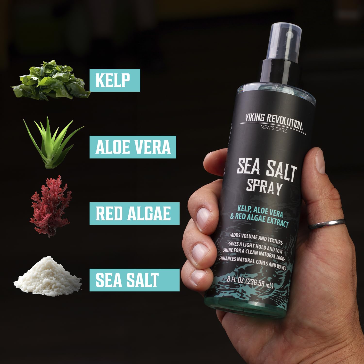 Viking Revolution Sea Salt Spray for Hair Men (8fl oz), Hydrating Hair Oil for Men with Vitamin E (3.38fl oz) and Styling Powder (1oz) - Mens Styling Texturizing Kit