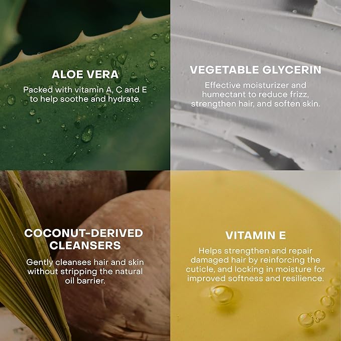 - POWERFUL PLANT BASED INGREDIENTS: Contains 40% aloe vera to soothe and hydrate the scalp, 35% glycerin to deeply nourish and moisturize hair, pumpkin seed oil to repair damage, and baobab oil to boost shine and elasticity.