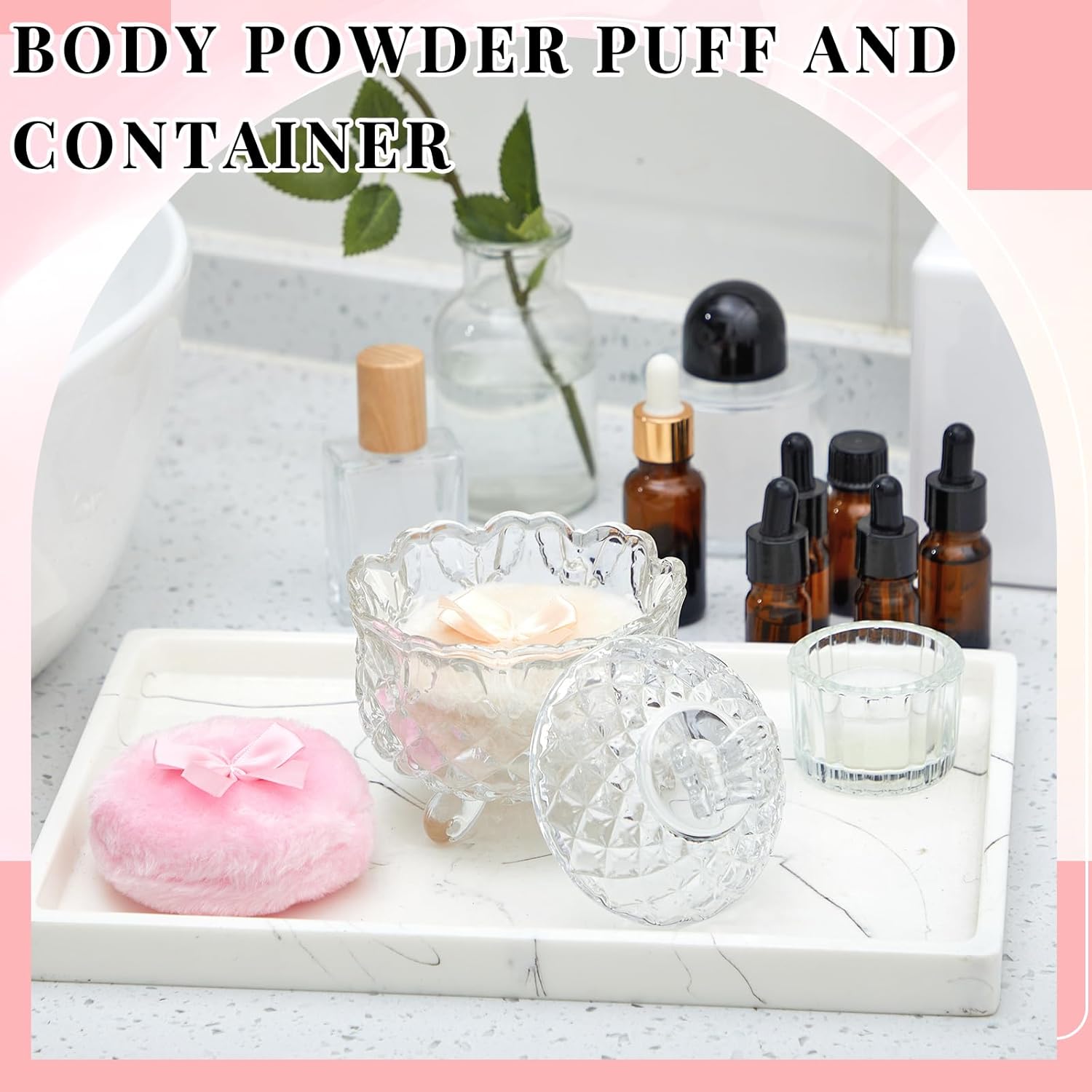 - Quality Material and Design: Our products showcase an exquisite design with a fluffy powder puff about 3.54 x 1.18 inches/ 90 x 30 mm and a crystal glass powder container, about 3.94 inches/ 10 cm in caliber, about 4.33 inches/ 11 cm in height. The materials offer an attractive yet efficient skin care tool