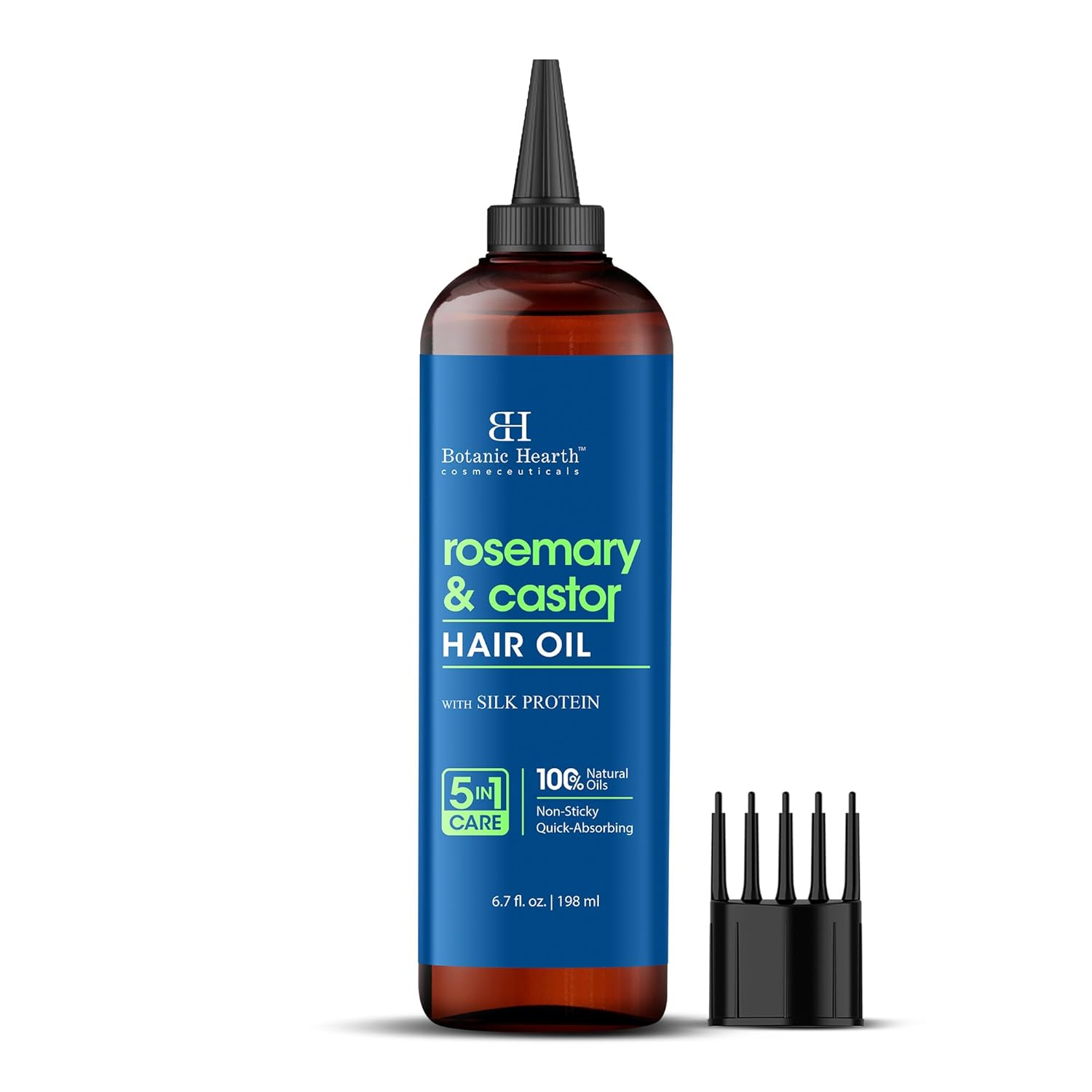 Botanic Hearth Rosemary & Castor Hair Oil (6.7 Fl Oz) |Nourishing And Strengthening Hair Treatment For Thicker, Healthier|Looking Hair | Paraben Free | Suitable For All Hair Types