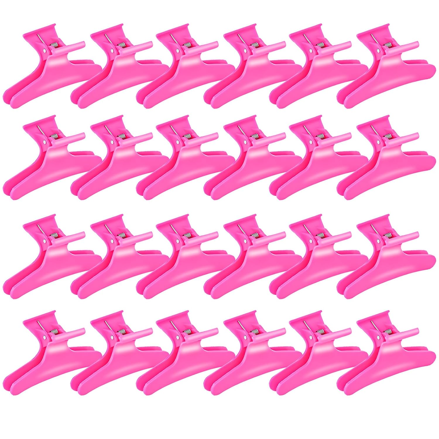 Ondder 24 Pcs Hot Pink Butterfly Hair Claw Clips for Styling Sectioning Styling Makeup Hair Sectioning Clips for Makeup Cutting Coloring Hair Accessories for Women Girls