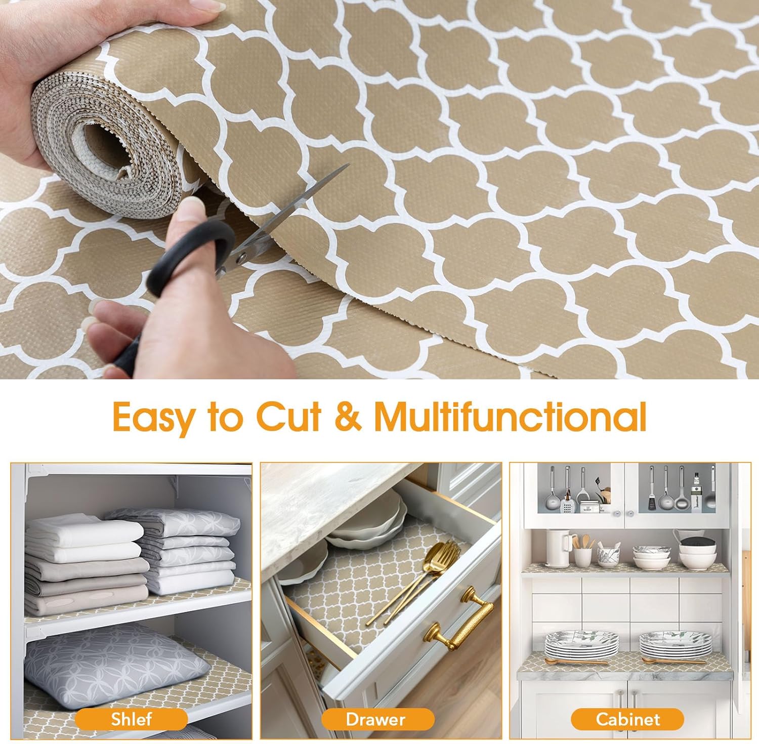 - Multifunctional: Kitchen Cabinet Liner can be used on shelves, drawers cabinets, desks and tables to protect surfaces and keep them clean. Various Usage: Drawer Liner, Cabinet Liner, Shelf liner, Kitchen Shelf Liner, Kitchen Cabinet Liner, etc...