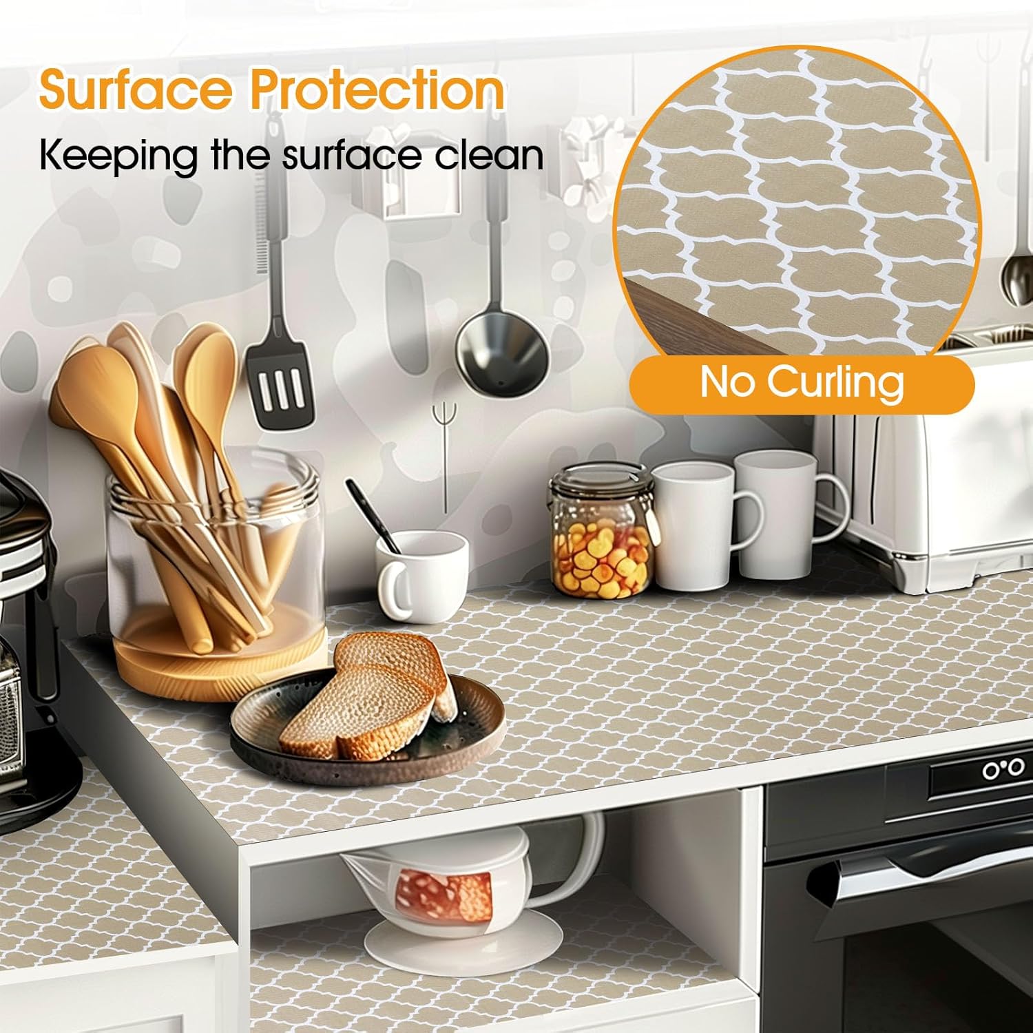 - Surface Protection and No Curling: Cabinet Liner fits well on any flat surface. It effectively protect the surfaces of drawers, shelves, cabinets from scratches and daily wear and tear.It is also waterproof and anti-oil, keeping the surface clean.