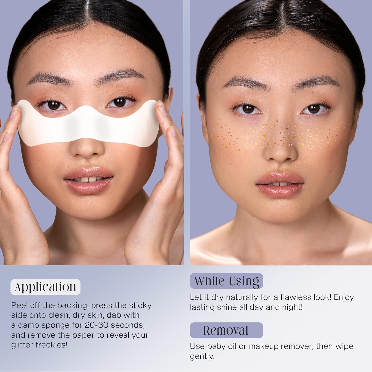 - Dazzling Glitter Freckles for Every Occasion: Enhance your beauty with glitter freckles face tattoos—perfect for festivals, raves, costume parties, or even casual days. These freckle tattoos add a unique touch to your face glitter makeup or teen makeup styles.