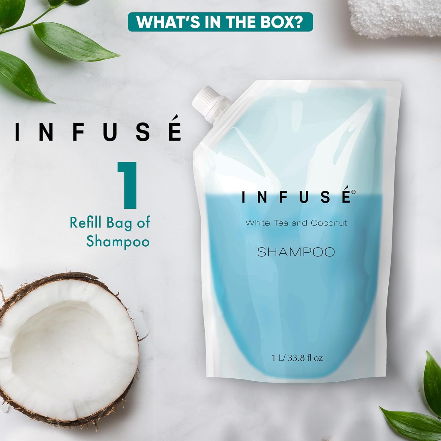 - HOTEL-QUALITY, LUXURIOUS AMENITIES: Enhance your guest experience with the Infuse White Tea and Coconut in a convenient 1-Liter Refill Bag, designed to refill wall-mounted and stand-alone dispensers. Enriched with white tea, coconut, organic aloe, and olive oil, this gentle, daily-use formula suits sensitive skin and hair. Ideal for hotels, vacation rentals, guest bathrooms, and homes, these premium amenities add sophistication and functionality to any hospitality space.