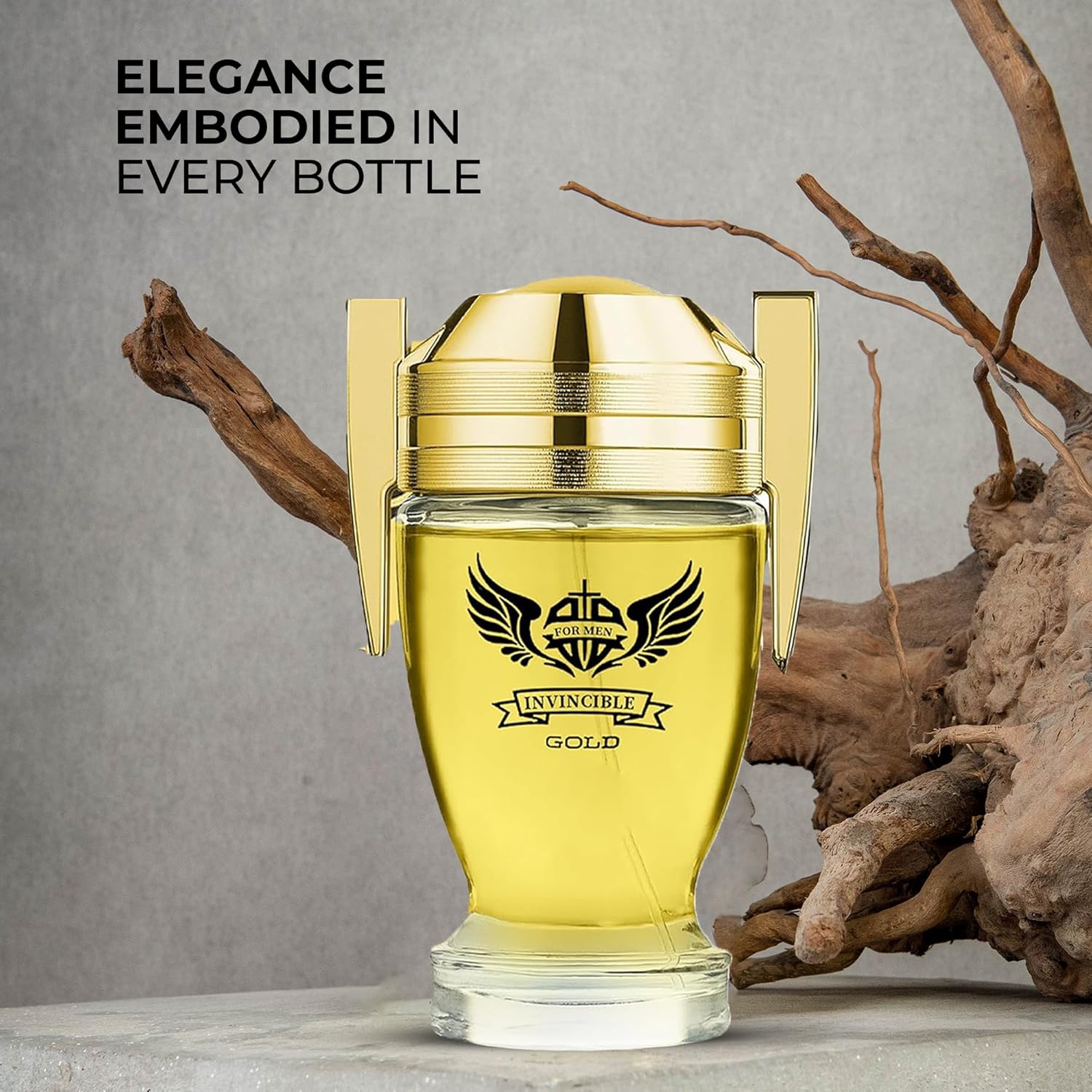 Invincible Gold Men's Cologne–Bold & Sophisticated Scent Eau de Toilette With Citrus, Spice, And Woody Notes Natural Spray Fragrance 3.4Fl Oz