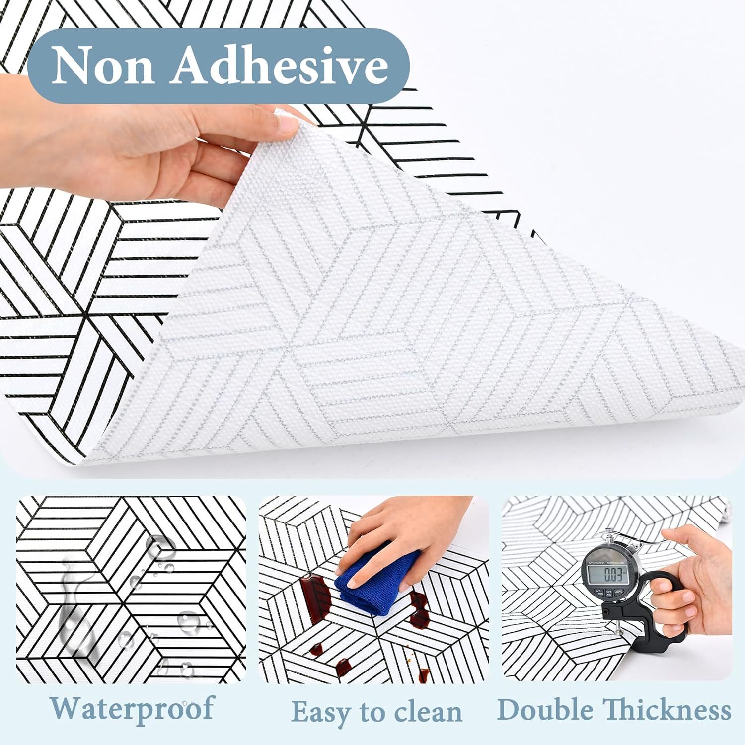 Shelf Liners for Kitchen Cabinets 12in x 30FT, Non Adhesive Cabinet Liner Strong Non-Slip Thickened Black White Geometric Drawer Liner, Easy to Clean for Shelf, Cabinet with Knife and Tape Measure