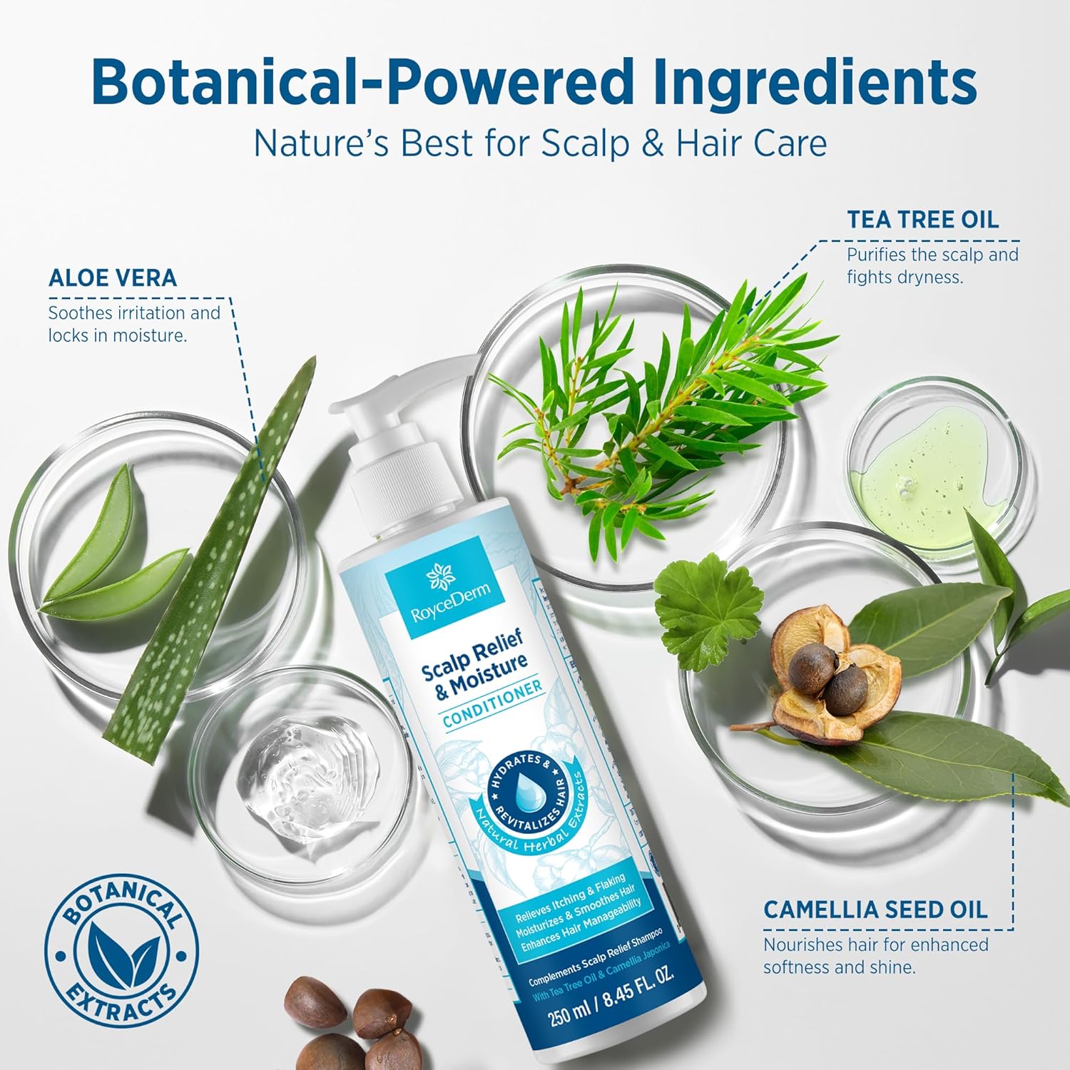 Roycederm Scalp Relief & Moisture Conditioner: Hydrating & Nourishing Formula with Jojoba Oil, Aloe Vera & Camellia Oil, Soothes Dry, Itchy Scalp