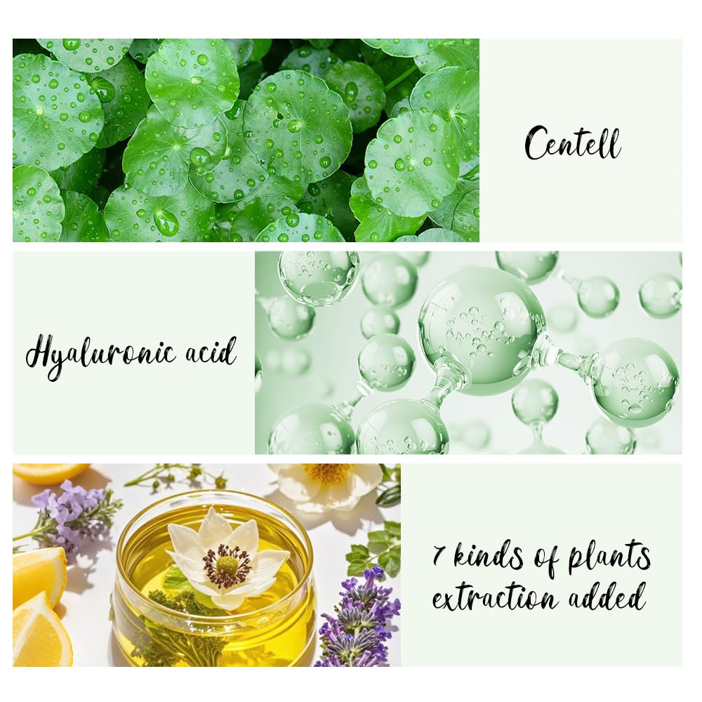 - KEY NATURAL INGREDIANTS : Added Centella sinensis extract and 7 kinds of plant extracts containing patents, effectively help soothe skin, replenish moisture, calm red skin, achieve internal and external healthy strong face skin.