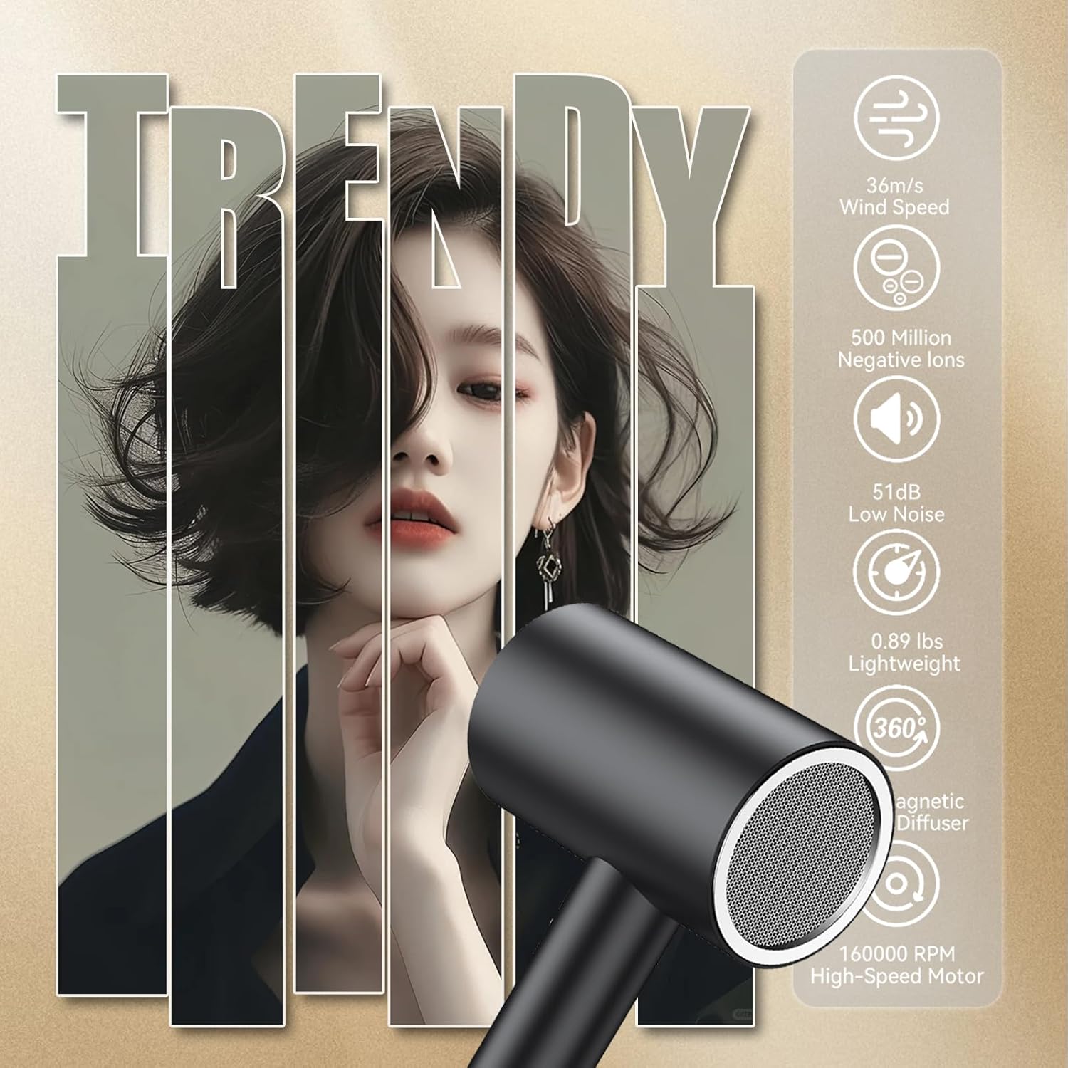 - The hairdryer boasts a compact size and lightweight construction, while its polished metallic surface or matte texture adds a touch of finesse to the overall design.This hair dryer equipped with a high-density dust screen inside, which can effectively prevent hair from being sucked in【equipped 362 Rotatable Hair Dryer Stand】