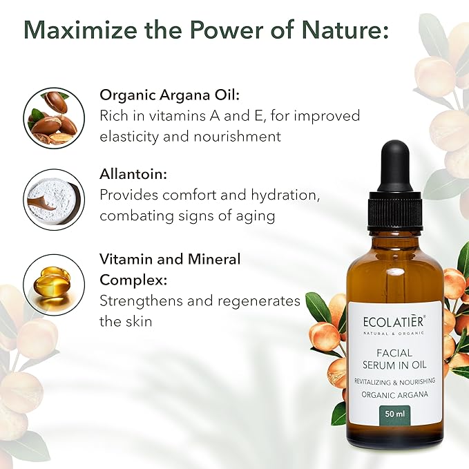 - Facial Serum: Argana oil, wheat germ oil, and vitamins reduce fine lines, improve skin elasticity, and provide deep hydration and nourishment.