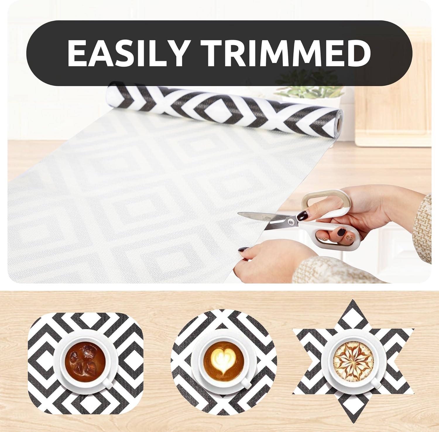 - Elegant Design - The differences of shelf liner between ours and the others is appearance designs. We will take into account the needs of customers for aesthetics. Therefore, to instead of regular plain shelf liners, we thought about European style design, use our shelf liner to decorate your refrigerator, shelf, kitchen, bathroom.