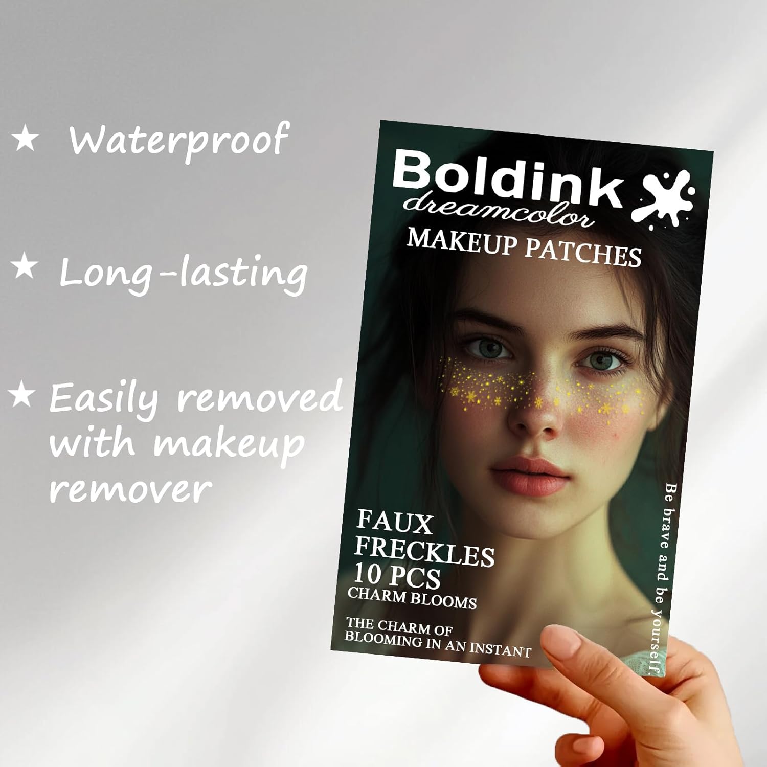 - EASY TO APPLY - Using our Boldink Face Glitter speckle patches is easy and quick! Simply peel off the backing, apply the sticky side to your skin, and press with a damp washcloth for 60 seconds. Once you remove the patch, you'll be amazed by your new sparkly look! No fuss, no mess, and a natural-looking glittery look in just minutes. Perfect for those times when you want to add a touch of sparkle to your look!