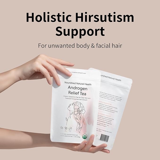 - BACKED BY PEER-REVIEWED SCIENCE - Researchers have demonstrated that two cups of spearmint tea daily has significant androgen-lowering effects in people and can support a reduction in acne and hirsutism. Our Androgen Relief tea has been formulated with sustainably sourced, loose-leaf USDA Certified Organic spearmint tea with this in mind.