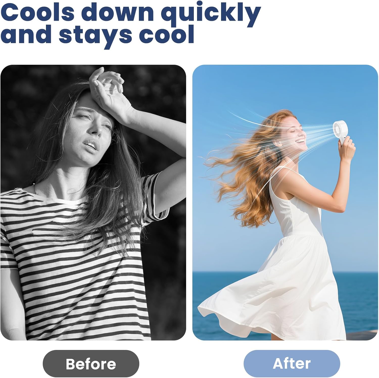 - Comfort-Grip & Thoughtful Gifting: Ergonomic and comfortable to hold for a long time. The mini handheld fan comes with a wrist strap, which can be hung on your hand for outdoor activities. It is suitable as a gift. You and whoever’s around you will love this fan. Trust just get it
